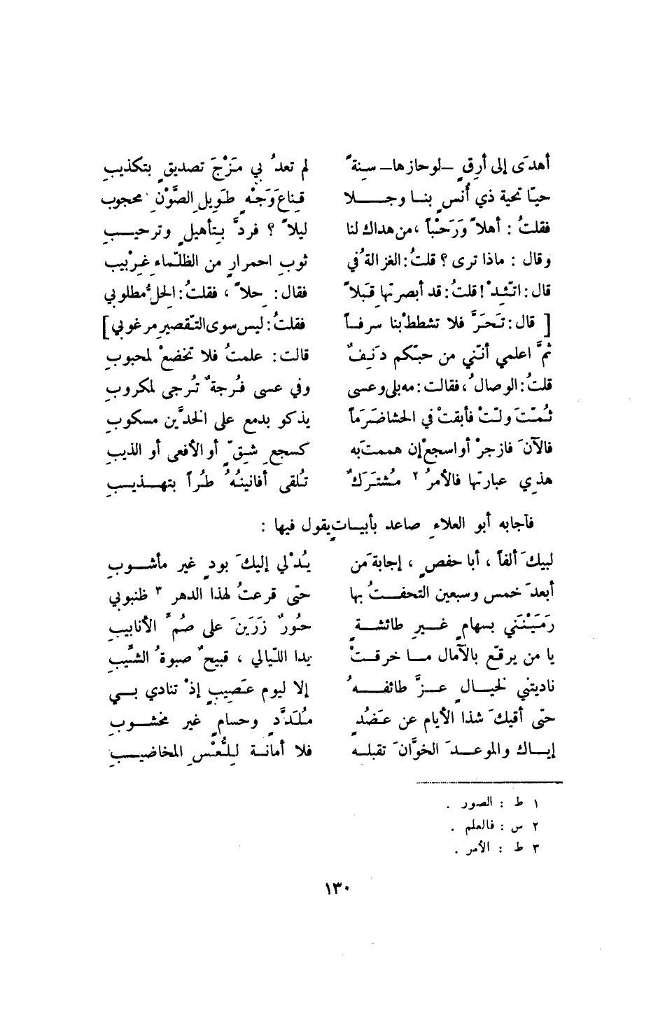هذي عبارتها فالأمر مشترك ... تلقى أفانينه طراً بتهذيب فأجابه أبو العلاء صاعد بأبيات يقول فيها: