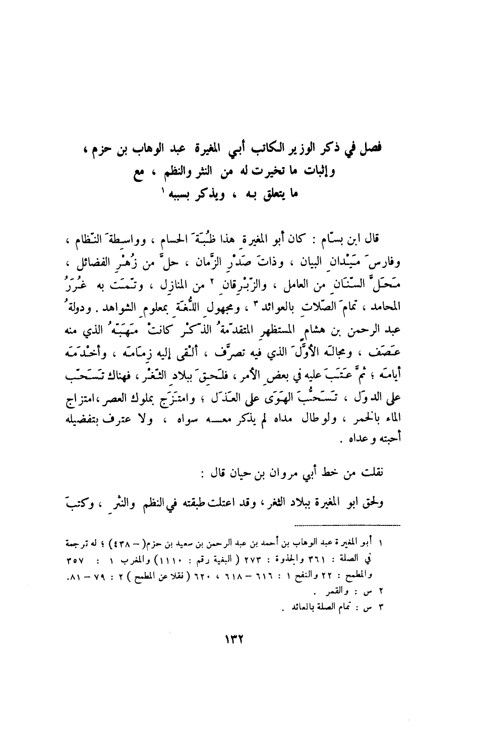 @فصل في ذكر الوزير الكاتب أبي المغيرة عبد الوهاب بن حزم،