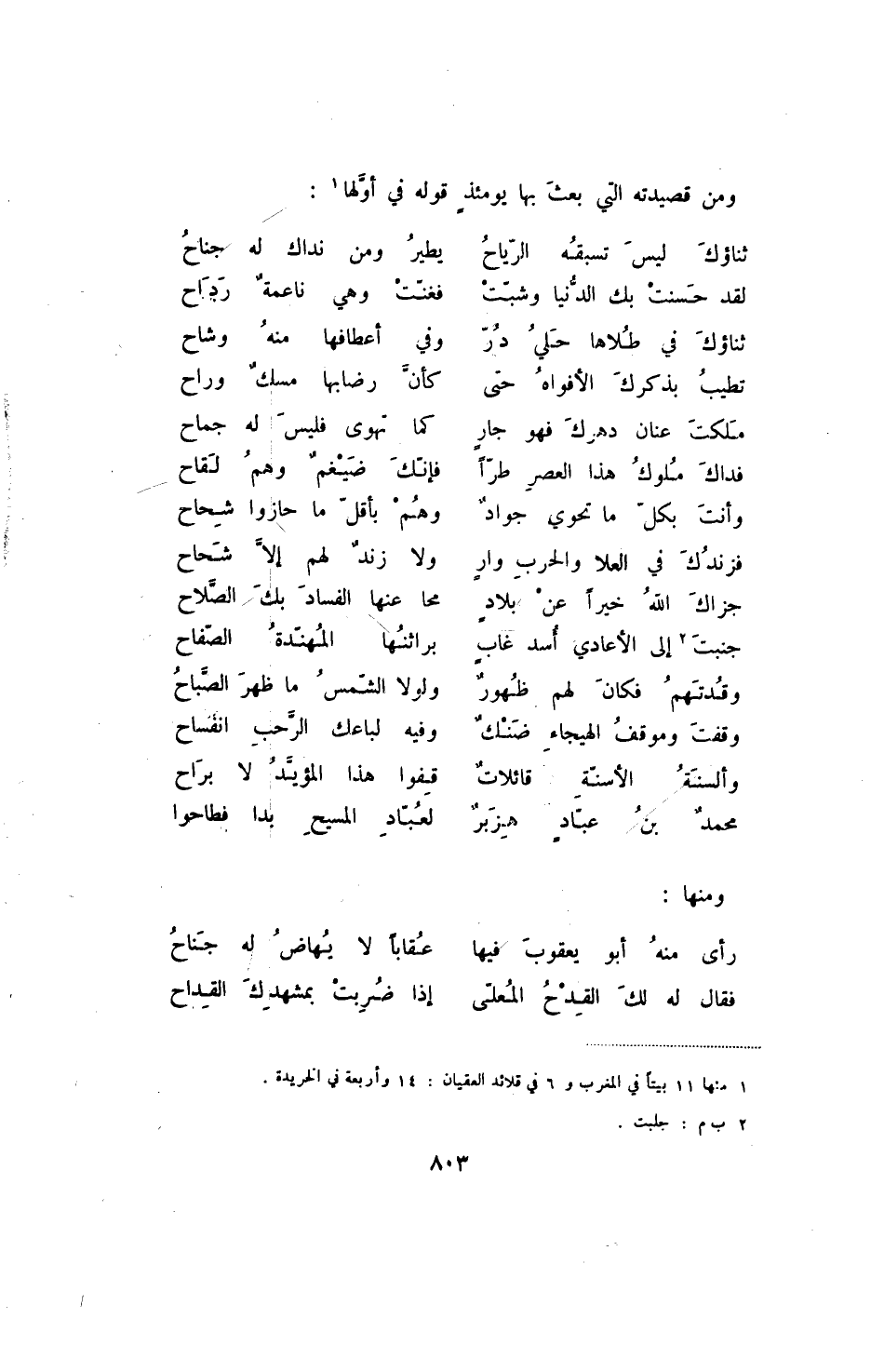 ثناؤك ليس تسبقه الرياح ... يطير ومن نداك له جناح