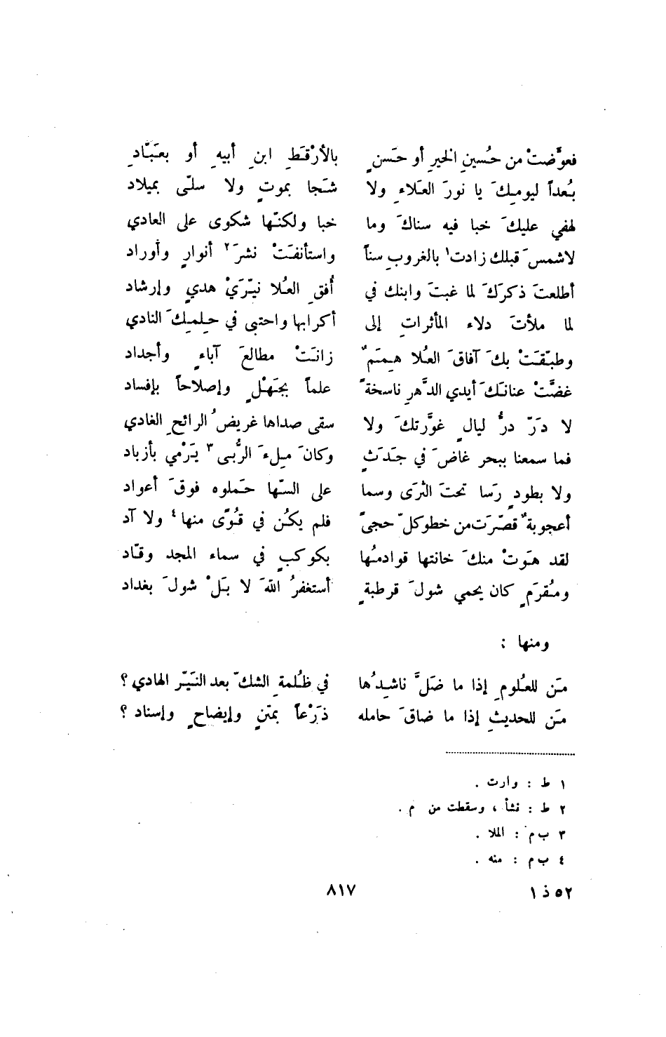 من للعلوم إذا ما ضل ناشدها ... في ظلمة الشك بعد النير الهادي -
