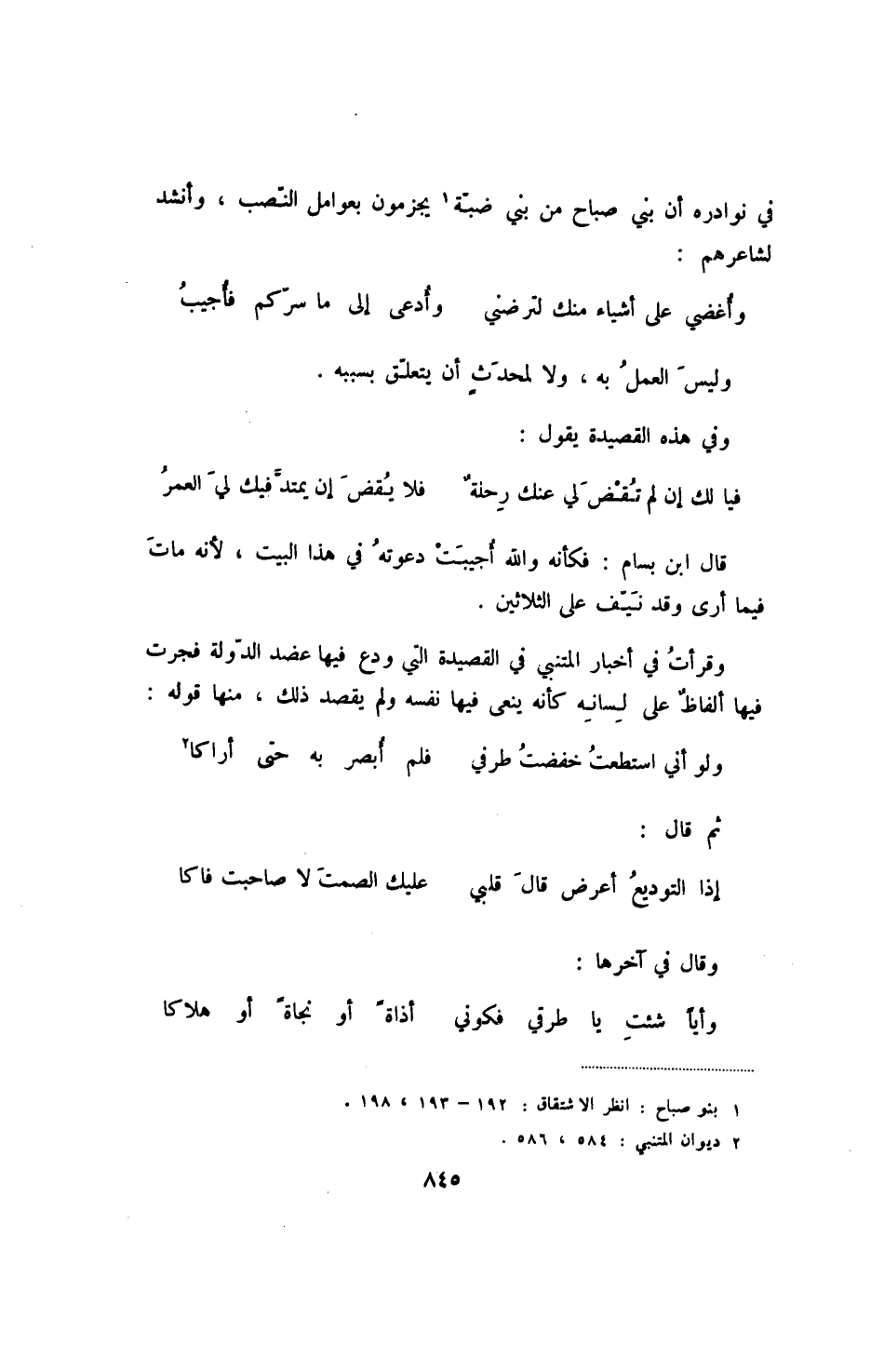 وقرأت في أخبار المتنبي في القصيدة التي ودع فيها عضد الدولة فجرت فيها ألفاظ على لسانه كأنه ينعى فيها نفسه ولم يقصد ذلك، منها:
