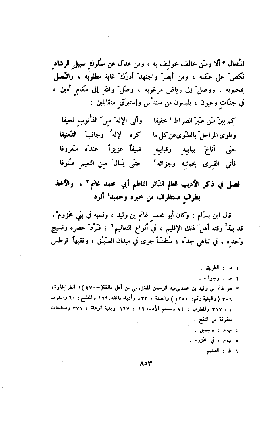 فأتى القرى بحبائه وجزائه ... حتى ينال من النعيم صنوفا @فصل في ذكر الأديب العالم الناثر الناظم أبي محمد غانم، والأخذ