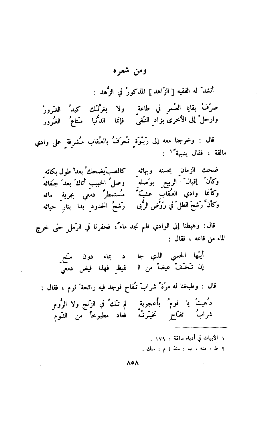 وارحل إلى الأخرى بزاد التقى ... فإنما الدنيا متاع الغرور قال: وخرجنا معه إلى ربوة تعرف بالعقاب مشرفة على وادي مالقة، فقال بديهة: