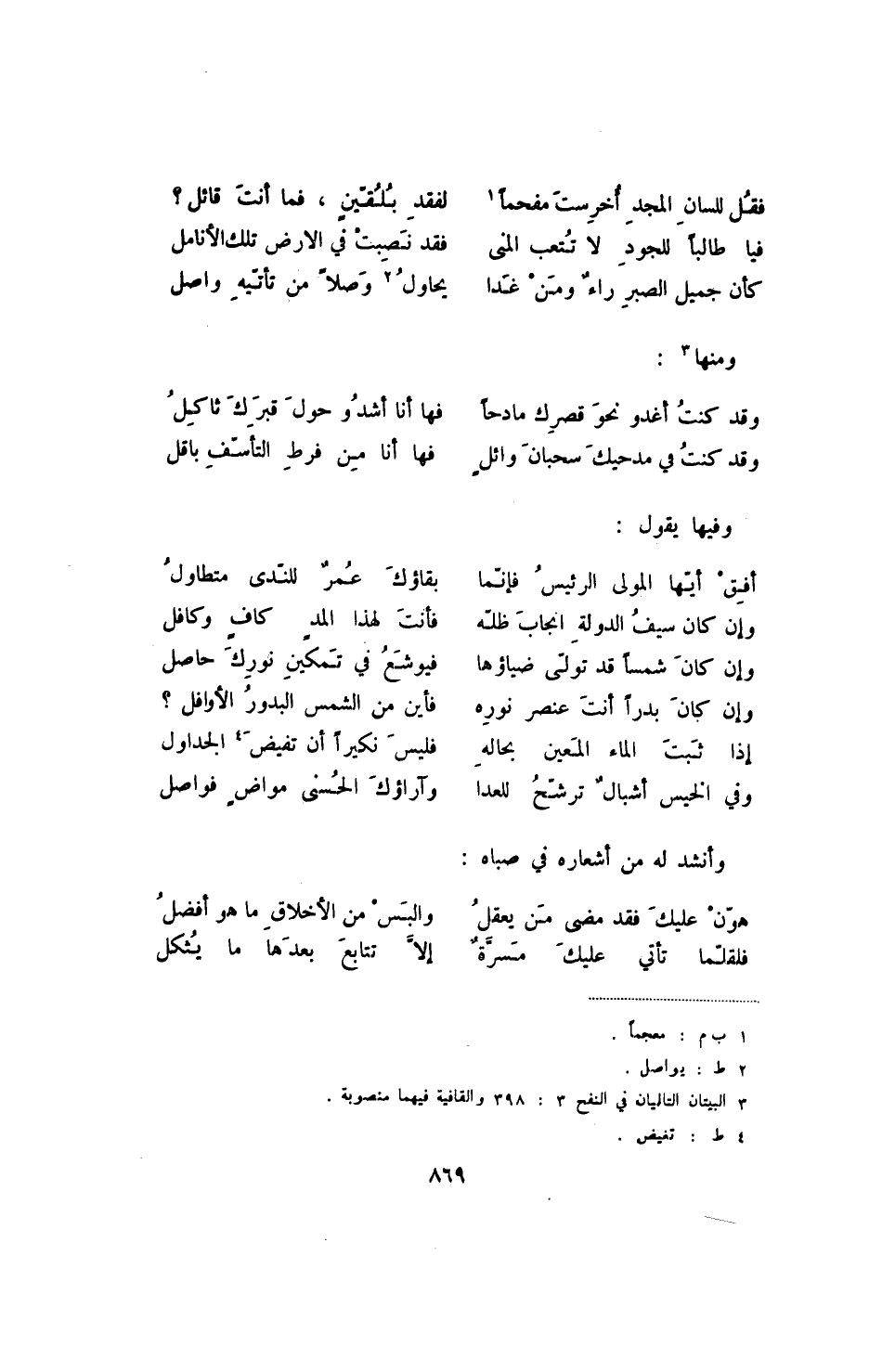 وإن كان بدراً أنت عنصر نوره ... فأين من الشمس البدور الأوافل -