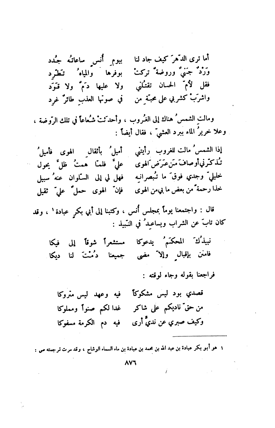 خذا رحمة من بعض ما بي من الهوى ... فإن الهوى حمل علي ثقيل قال: واجتمعنا يوماً بمجلس أنس، وكتبنا إلى أبي بكر عبادة، وقد كان تاب عن الشراب ويساعد في النبيذ: