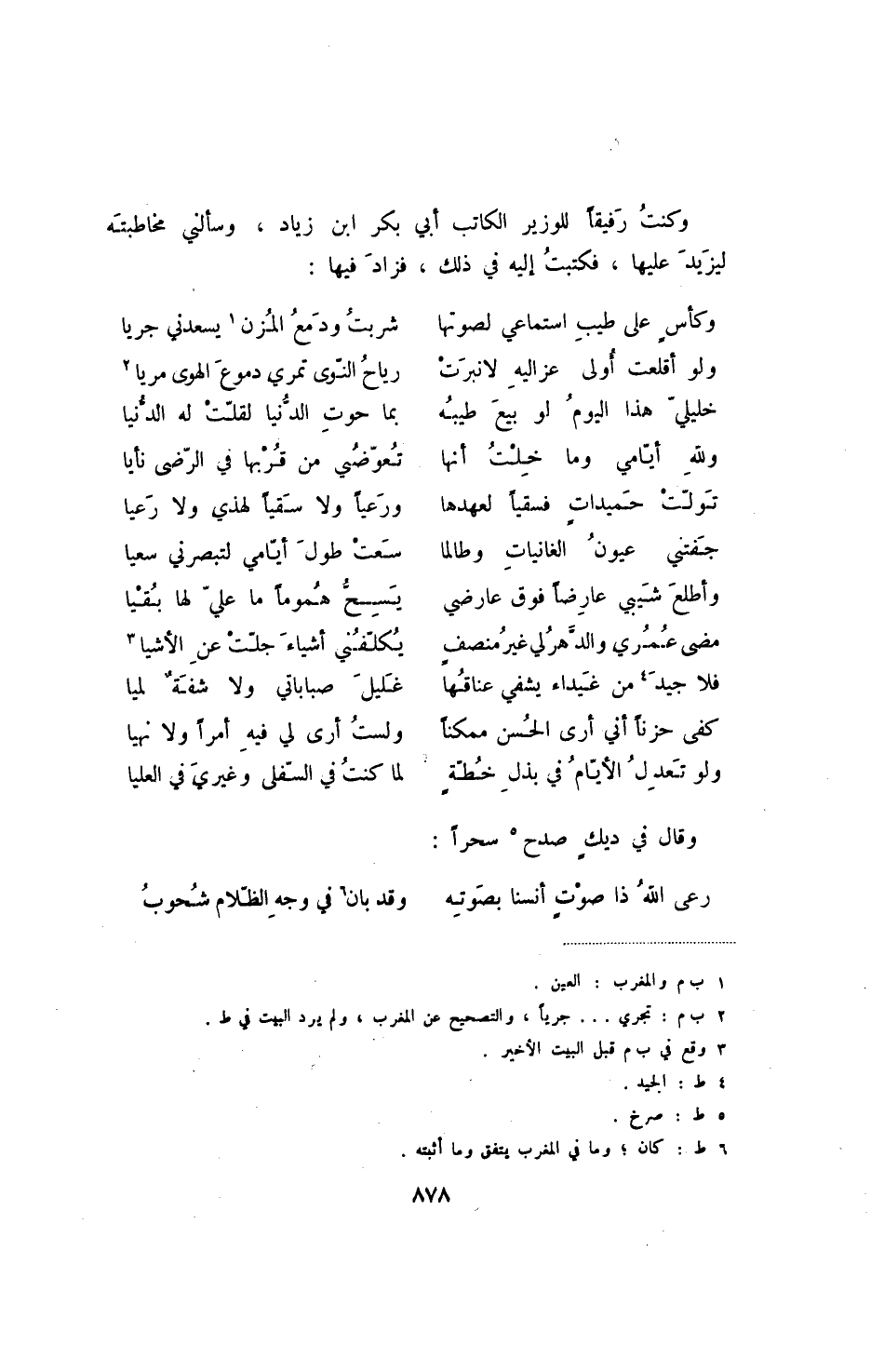 وكنت رفيقاً للوزير الكاتب أبي بكر ابن زياد، وسألني مخاطبته ليزيد عليها، فكتبت إليه في ذلك، فزاد فيها:
