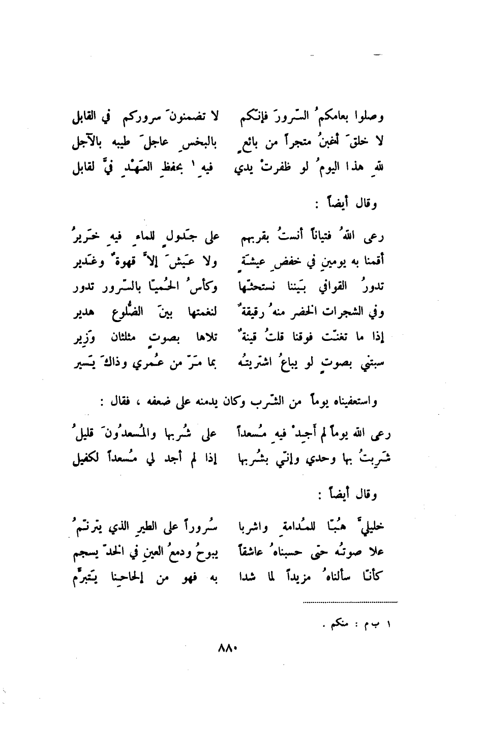 خليلي هبا للمدامة واشربا ... سروراً على الطير الذي يترنم