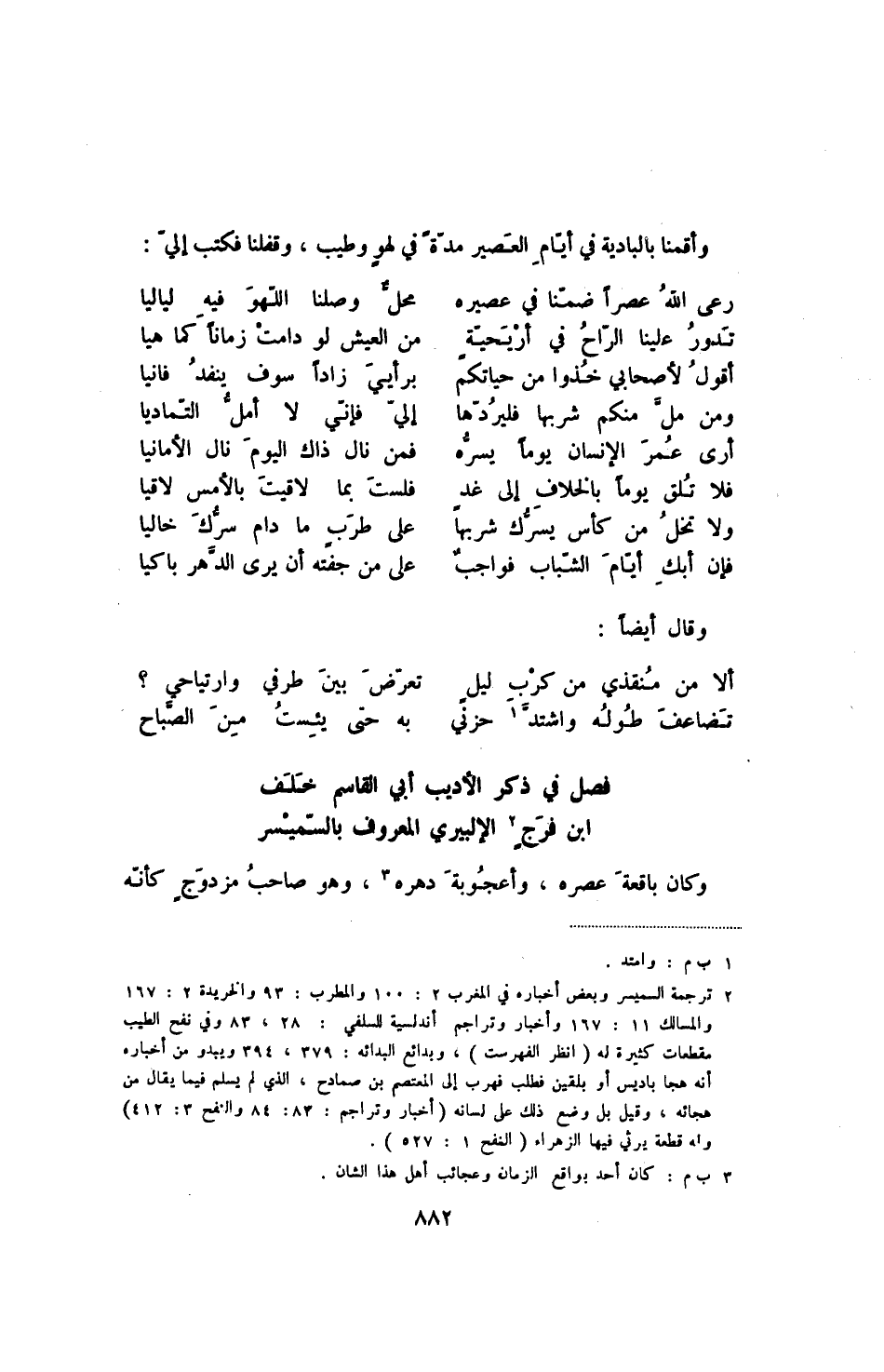 تضاعف طوله واشتد حزني ... به حتى يئست من الصباح @فصل في ذكر الأديب أبي القاسم خلف