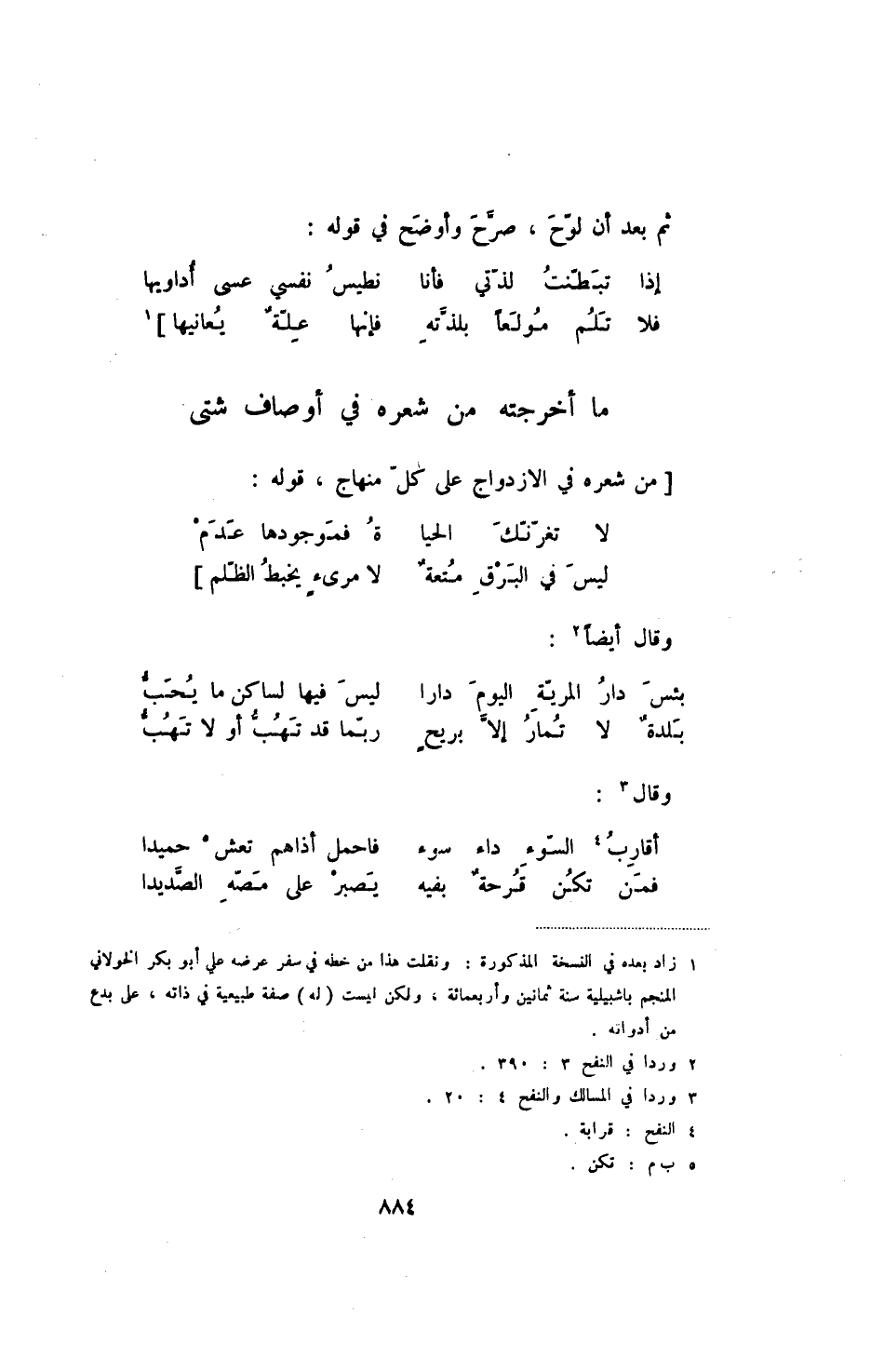 فلا تلم مولعاً بلذته ... فإنها علة يعانيها] @ما أخرجته من شعره في أوصاف شتى