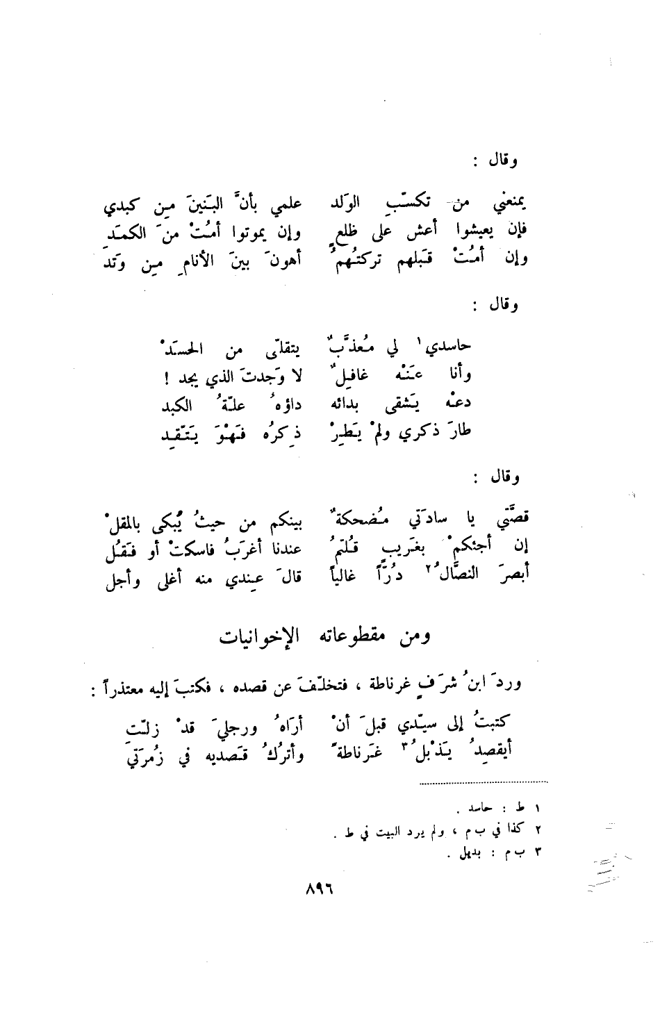 أبصر النصال دراً غالياً ... قال عندي منه أغلى وأحل @ومن مقطوعاته الإخوانيات