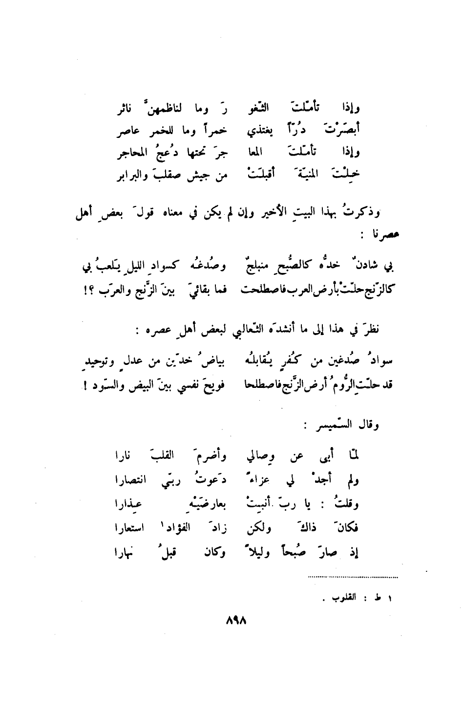 كالزنج حلت بأرض العرب فاصطلحت ... فما بقائي بين الزنج والعرب -! نظر في هذا إلى ما أنشده الثعالبي لبعض أهل عصرنا:
