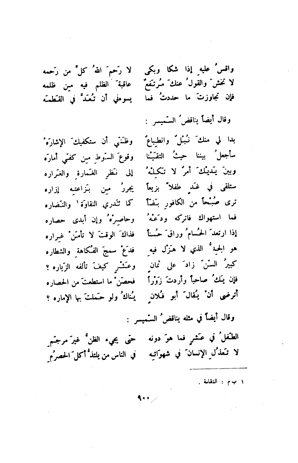 فإن تجاوزت ما حددت فما ... يسوءني أن تعد في القطعه وقال أيضاً يناقض السميسر: