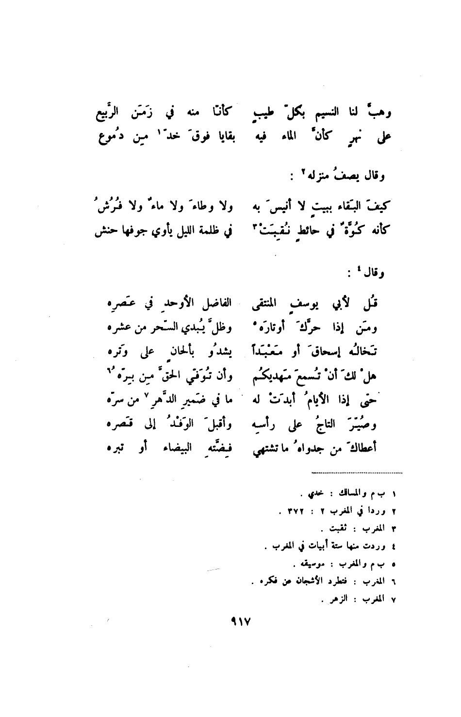 كيف البقاء ببيت لا أنيس به ... ولا وطاء ولا ماء ولا فرش