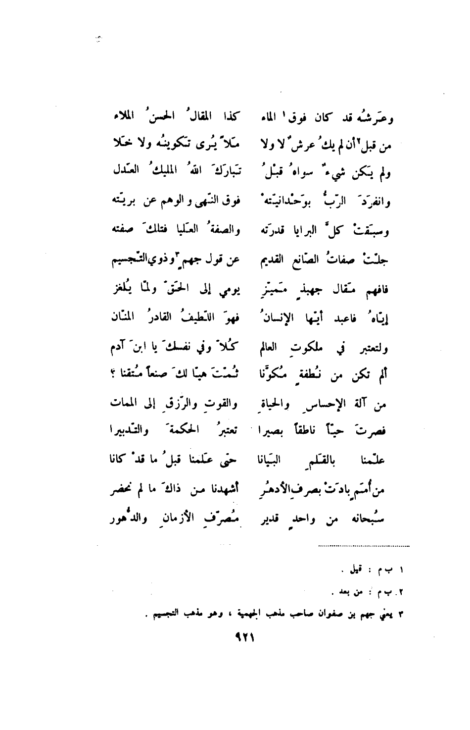 جلت صفات الصانع القديم ... عن قول جهم وذوي التجسيم