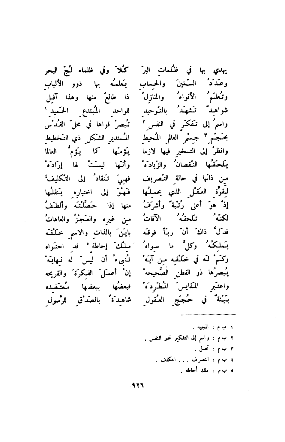 بينة في حجج العقول ... شاهدة بالصدق للرسول