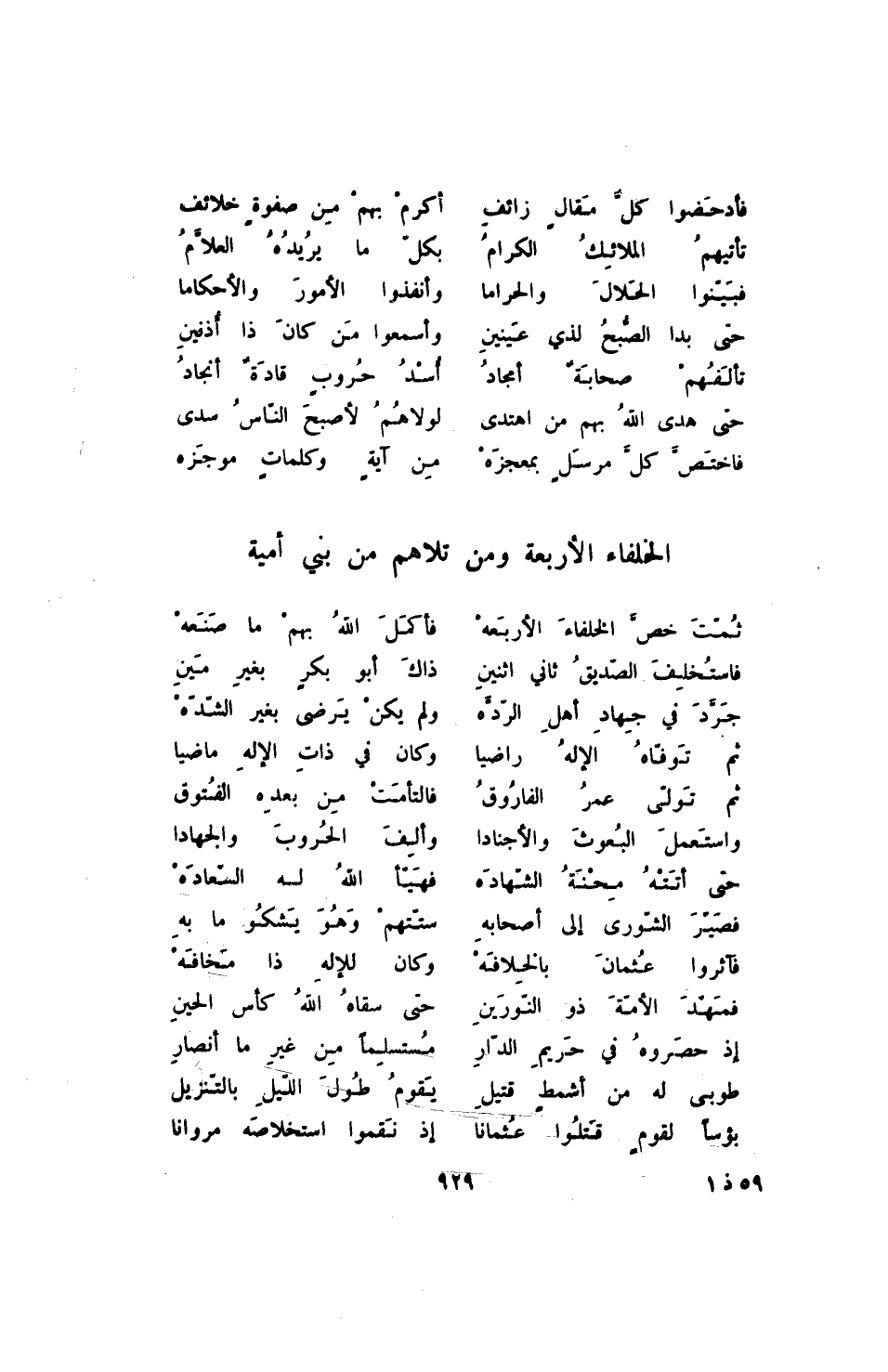 فاختص كل مرسل بمعجزة ... من آية وكلمات موجزه @الخلفاء الأربعة ومن تلاهم من بني أمية