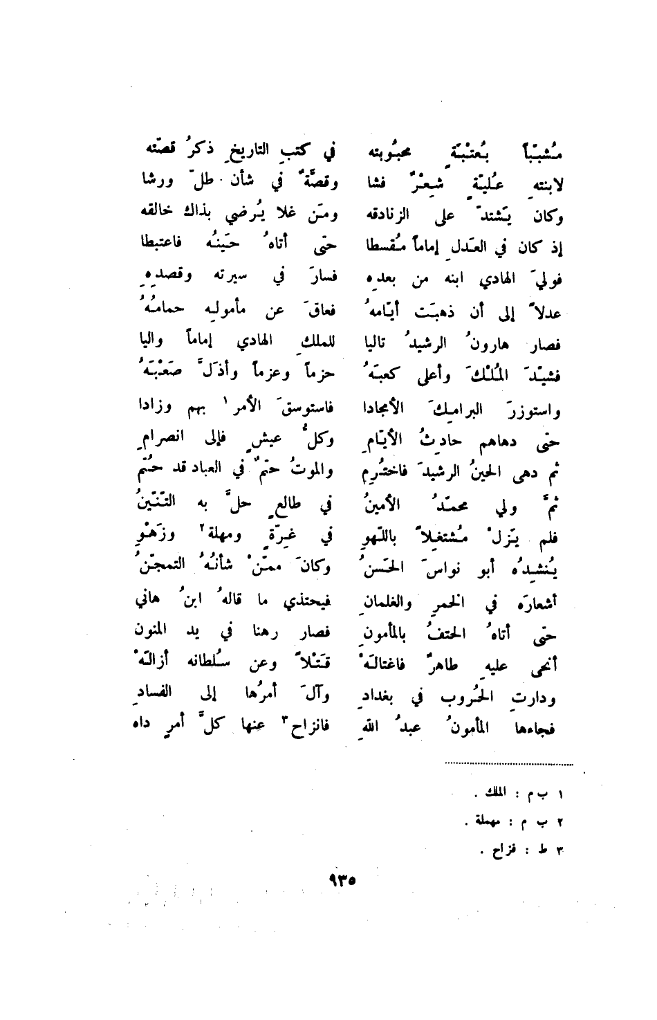 فصار هارون الرشيد تاليا ... للملك الهادي إماماً واليا