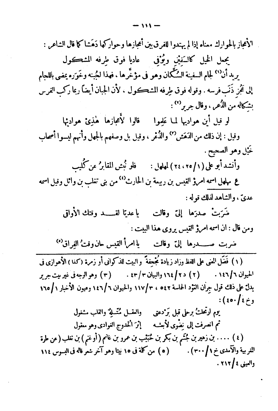 يجعل الخيل كالسفين ويوفي ... عادياً فوق طرفه المشكول