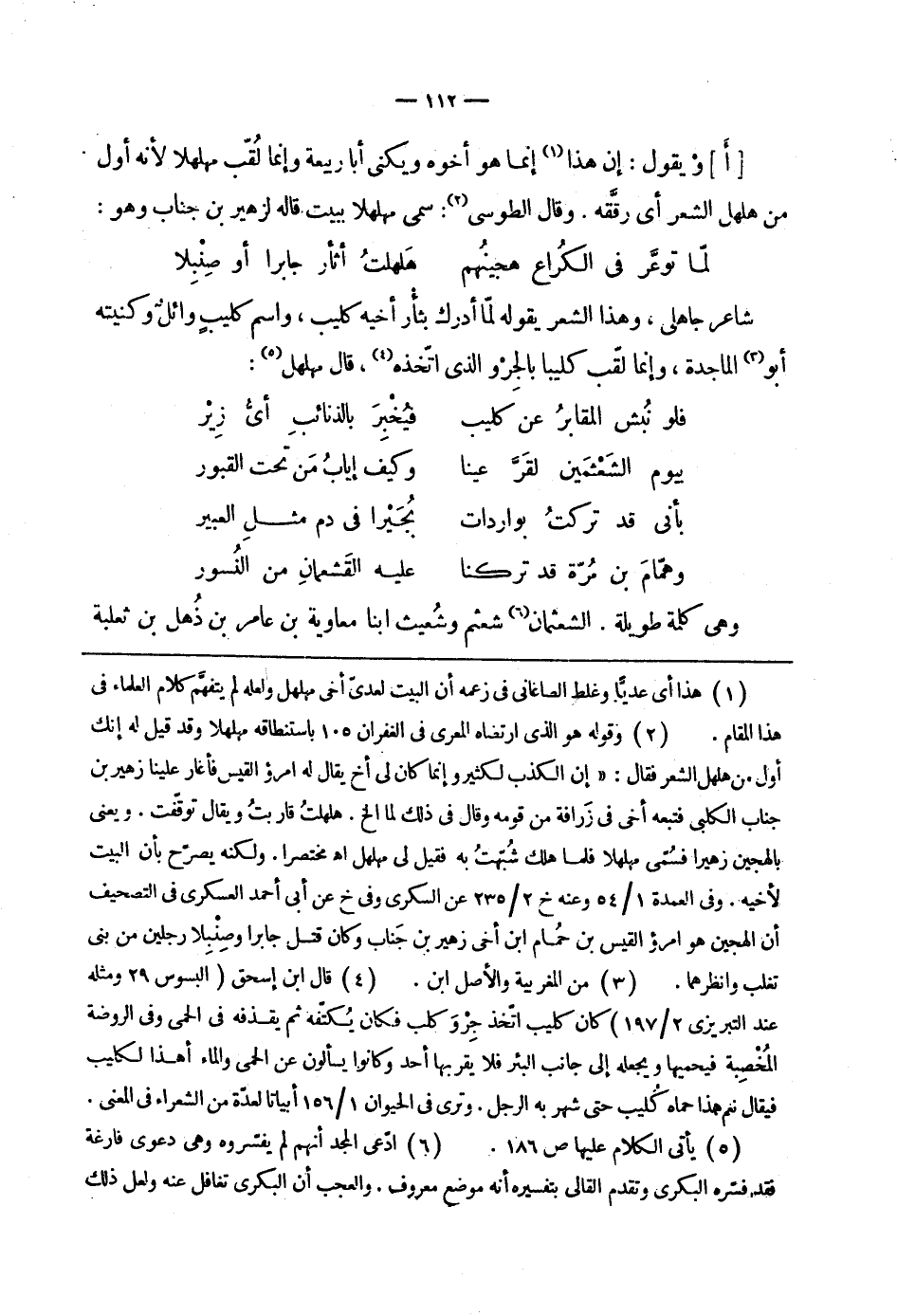 " أ " ويقول: إن هذا إنما هو أخوه ويكنى أبا ربيعة وإنما لقّب مهلهلاً لأنه أول من هلهل الشعر أي رقّقه. وقال الطوسي: سمي مهلهلاً ببيت قاله لزهير بن جناب وهو: