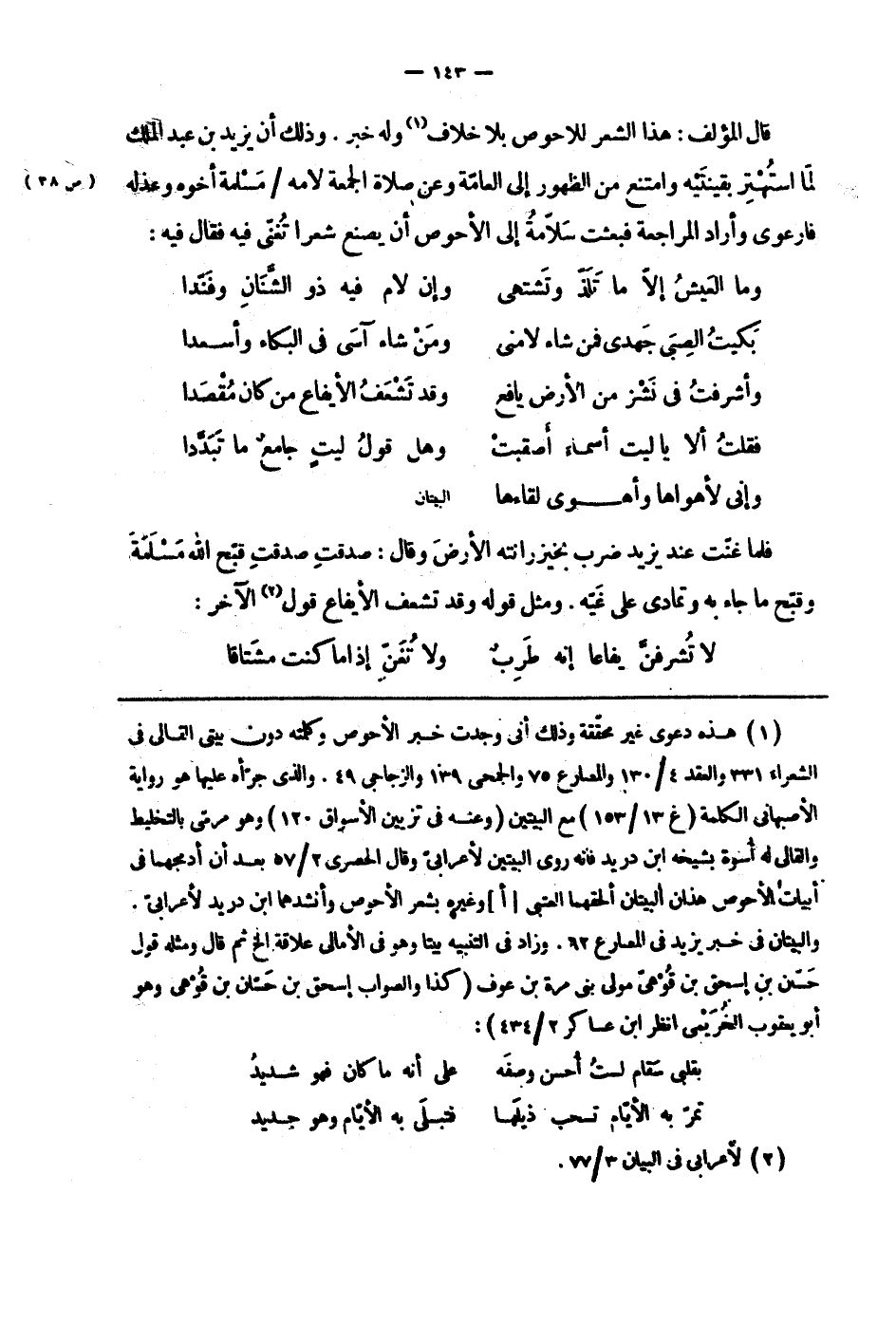 قال المؤلف: هذا الشعر للأحوص بلا خلاف وله خبر. وذلك أن يزيد بن عبد الملك لما استهتر بقينتيه وامتنع من الظهور إلى العامّة وعن صلاة الجمة لأمه مسلمة أخوه وعذله فارعوى وأراد المراجعة فبعثت سلاّمة إلى الأحوص أن يصنع شعراً تغنّى فيه فقال فيه: