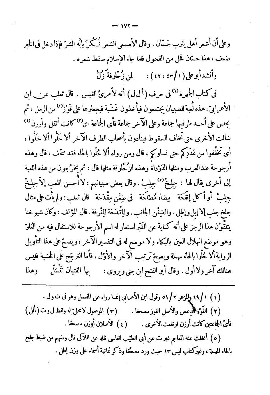 في كتاب الجمهرة في حرف أل ل أنه لامرئ القيس. قال ثعلب عن ابن الأعرابيّ: هذه لعبة للصبيان يجتمعون فيأخذون خشبة فيجعلوها على قوز من الرمل، ثم يجلس على أحد طرفيها جماعة وعلى الآخر جماعة فأي الجماعة التي كانت أثقل وأوزن شالت الأخرى حتى تخاف السقوط فينادون بأصحاب الطرف الآخر ألا خلّوا ألا خلّوا، أي تخفّفوا من عددكم حتى نساويكم، قال ومن رواه ألا حلّوا بالحاء فقد صحّف، قال وهذه أرجوحة عند العرب ومثلها الدوداة وهذه الزحلوفة مثلها قال: ثم يخرجون من هذه اللعبة إلى أخرى يقال لها: جلخ جلب. وقال بعض صبيانهم: لا أحسن اللعب إلاّ جلخ جلب أو أكل إنفحة بيضاء مصلحة في ضغن مقدحة قال ثعلب: ولم يأت على مثال جلخ جلب إلا إبل وإطل. والضغن الجانب. والمقدحة المغرفة. قال المؤلف: وكان شيوخنا يتلّقون هذا الرجز على أنه كناية عن القبر استعار له اسم الأرجوحة للاستفال فيه من العلوّ وهو موضع انهلال العين بالبكاء ولا موضع له في التفسير الآخر، ويصحّ على هذا التأويل الرواية ألا حلّوا بالحاء مهملة ويصحّ ترتيب الآخر والأوّل، فأما الترجّح على الخشبة فليس هنالك آخر ولا أول. وقال أبو الفتح ابن جني ويروى: