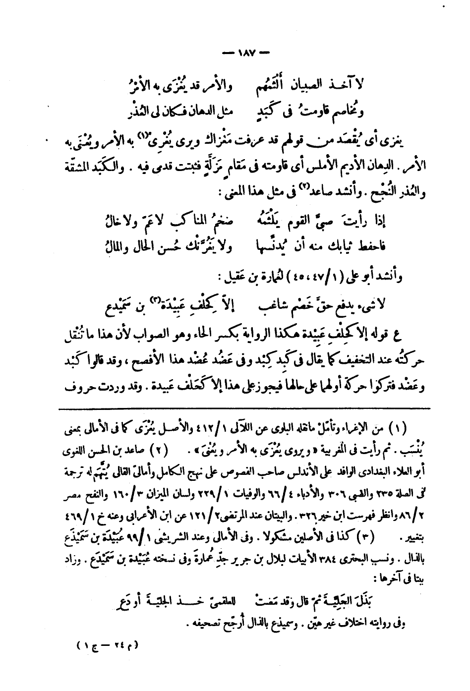 يغزى أي يقصد من قولهم قد عرفت مغزاك ويرى يغري به الأمر ويعنى به الأمر. الدهان الأديم الأملس أي مقاومته في مقام مزلّة فثبتت قدمي فيه. والكبد المشقّة والعذر النجح. وأنشد صاعد في مثل هذا المعنى: