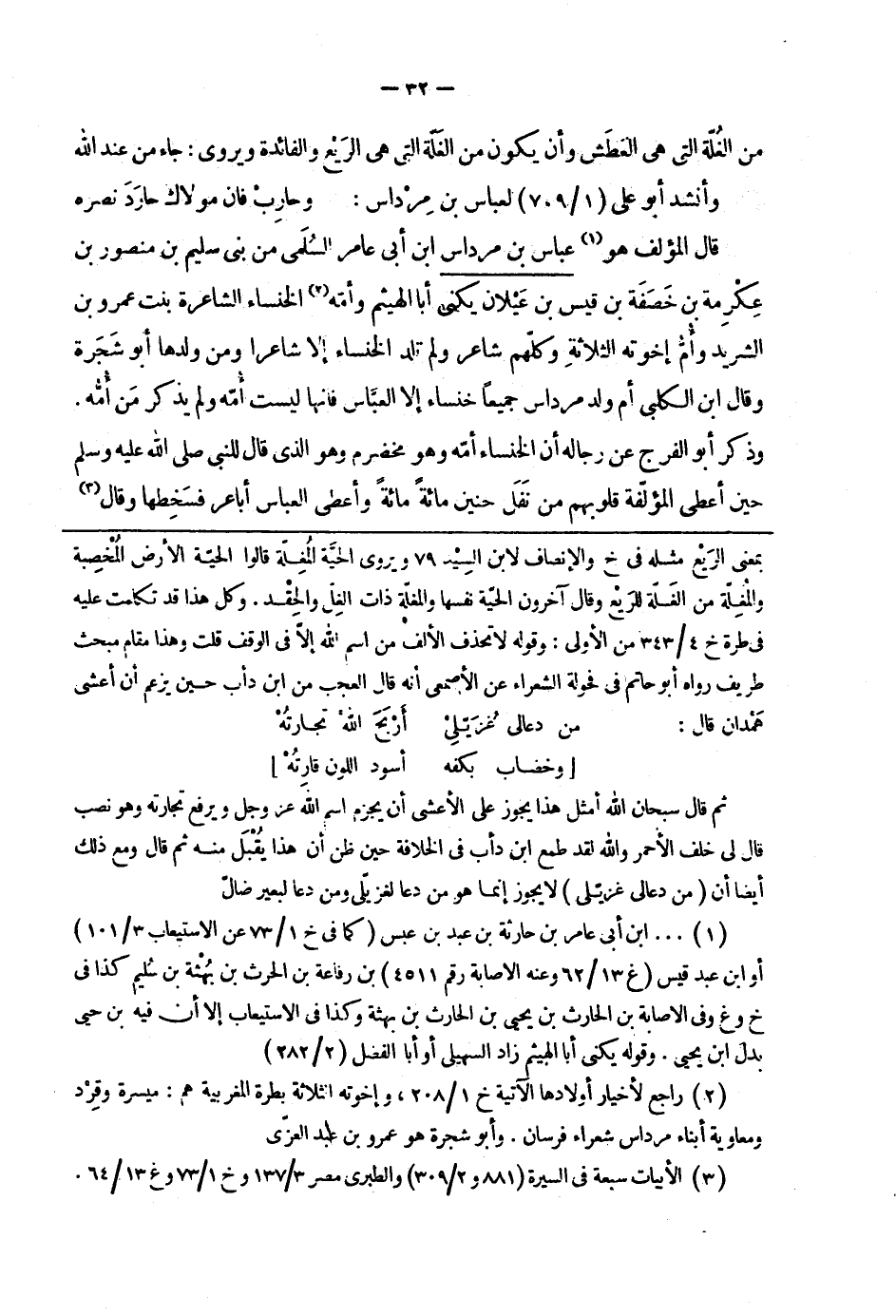 قال المؤلف هو عباس بن مرداس ابن أبي عامر السلمى من بني سليم بن منصور بن عكرمة بن خصفة بن قيس بن عيلان يكنى أبا الهيثم وأمّه الخنساء الشاعرة بنت عمرو بن الشريد وأمّ إخوته الثلاثة وكلّهم شاعر ولم تلد الخنساء إلا شاعراً ومن ولدها أبو شجرة وقال ابن الكلبي أم ولد مرداس جميعاً خنساء إلى العبّاس فإنها ليست أمّه ولم يذكر من أمّه. وذكر أبوالفرج عن رجاله أن الخنساء أمه وهو مخضرم وهو الذي قال: النبي صلى الله عليه وسلم حين أعطى المؤلفة قلوبهم من نفل جنين مائة مائة وأعطى العباس أباعر فسخطها وقال: