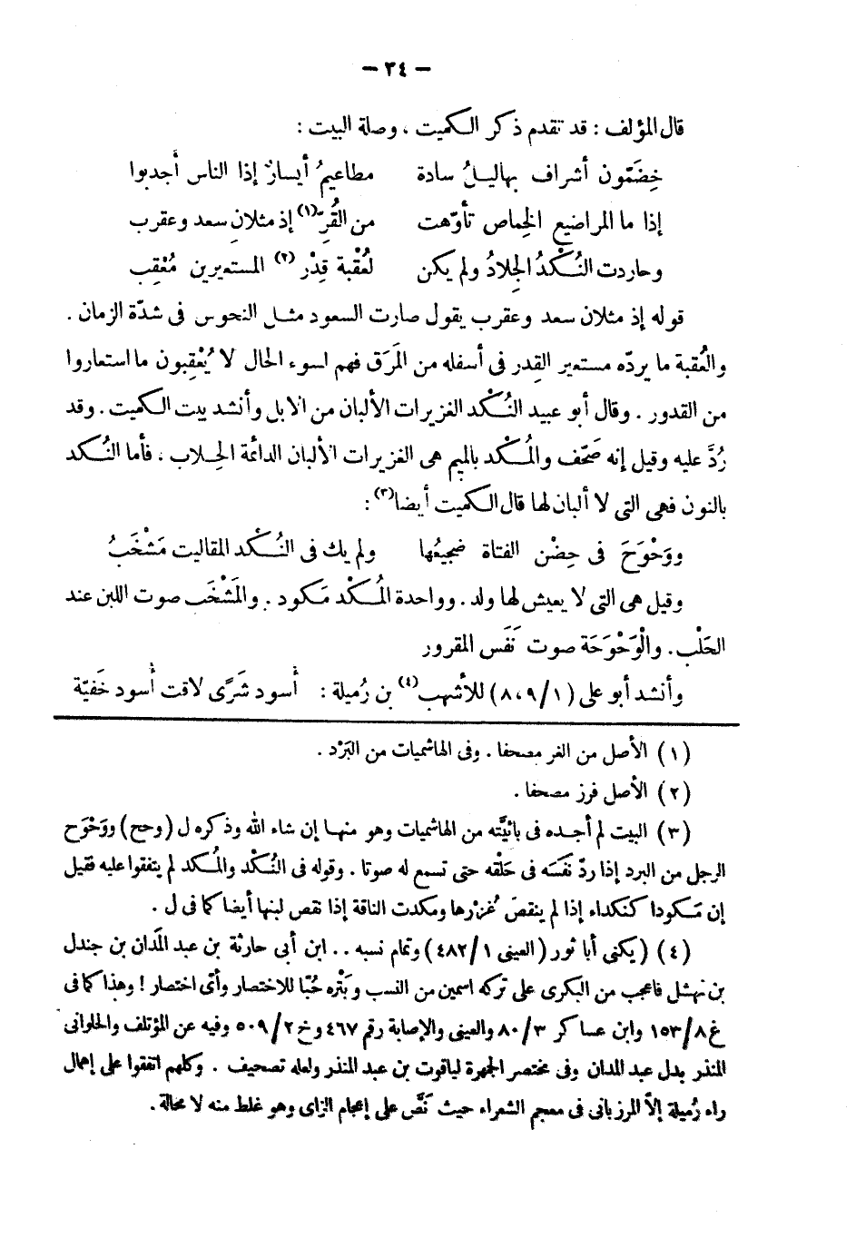 قوله إذ مثلان سعد وعقرب يقول صارت السعود مثل النحوس في شدة الزمان. والعقبة ما يردّه مستعير القدر في أسفله من المرق فهم لسوء الحال لا يعقبون ما استعاروا من القدور. وقال أبو عبيد النكد الغزيرات الألبان من الإبل وأنشد بيت الكميت. وقد ردّ عليه وقيل إنه صحّف والمكد بالميم هي الغزيرات الألبان الدائمة الحلاب، فأما النكد بالنون فهي التي لا ألبان لها قال الكميت أيضاً: