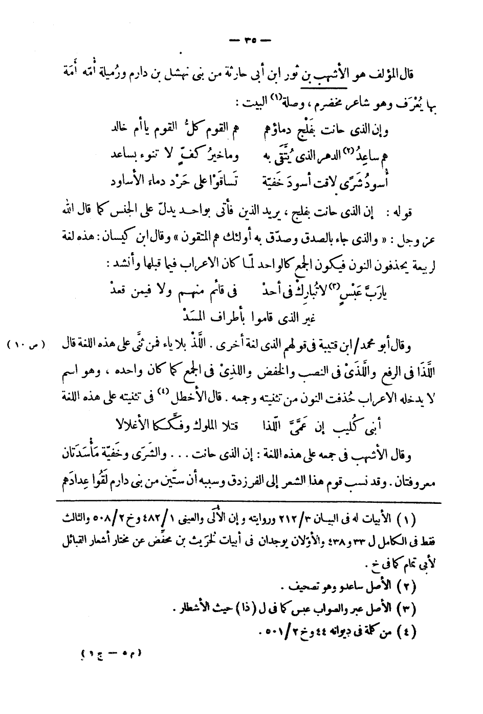 وقال الأشهب في جمعه على هذه اللغة: إن الذي حانت...... والشرى وخفيّة مأسدتان معروفتان. وقد نسب قوم هذا الشعر إلى الفرزدق وسببه أن ستّين من بني دارم لقوا عدادهم