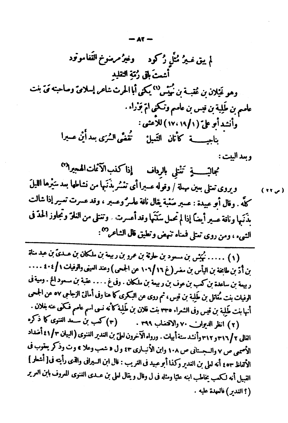 ويروى تعتلى بعين مهملة وقوله عسيرا أي تعسر بذنبها من نشاطها بعد سيرها الليل كلّه. وقال أبو عبيدة: عسير صعبة يقال ناقة عاسر وعسير، وقد عسرت تعسر إذا شالت بذنبها وناقة عسير أيضاً إذا لم تحمل سنتها وقد أعسرت. وتغتلي من الغلوّ وتجاوز الحدّ في الشيء، ومن روى تعتلى فمعناه تنهض وتطيق قال الشاعر: