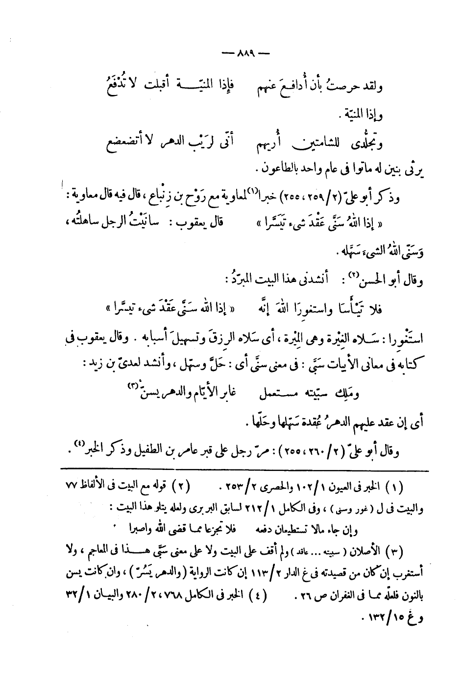 قال فيه قال معاوية: إذا الله سنى عقد شيء تيسرا قال يعقوب: سانيت الرجل ساهلته، وسنى الله الشيء سهله.
