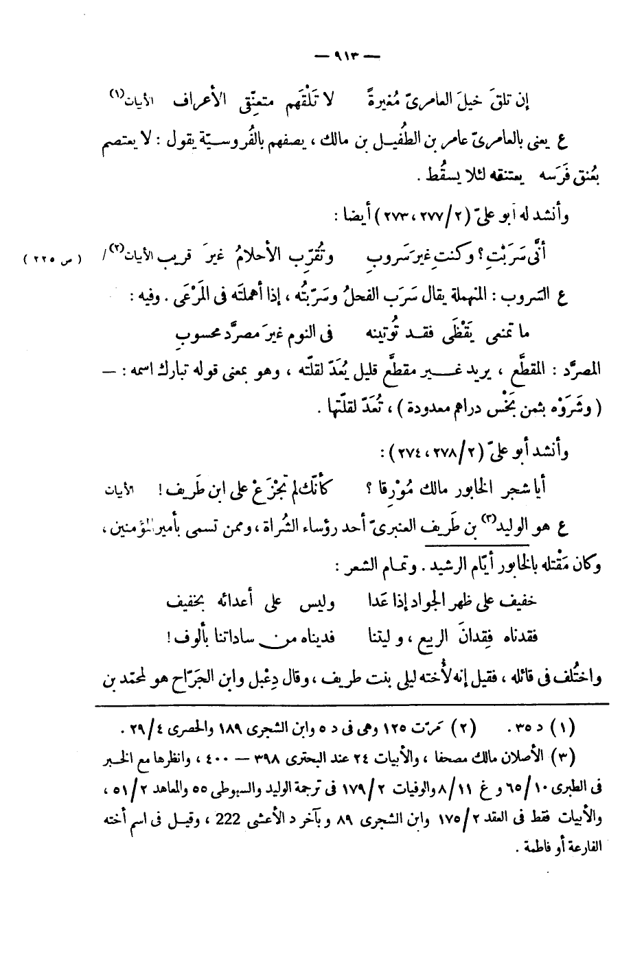 ع هو الوليد بن طريف العنبري أحد رؤساء الشراة، وممن تسمى بأمير المؤمنين، وكان مقتله بالخابور أيام الرشيد. وتمام الشعر: