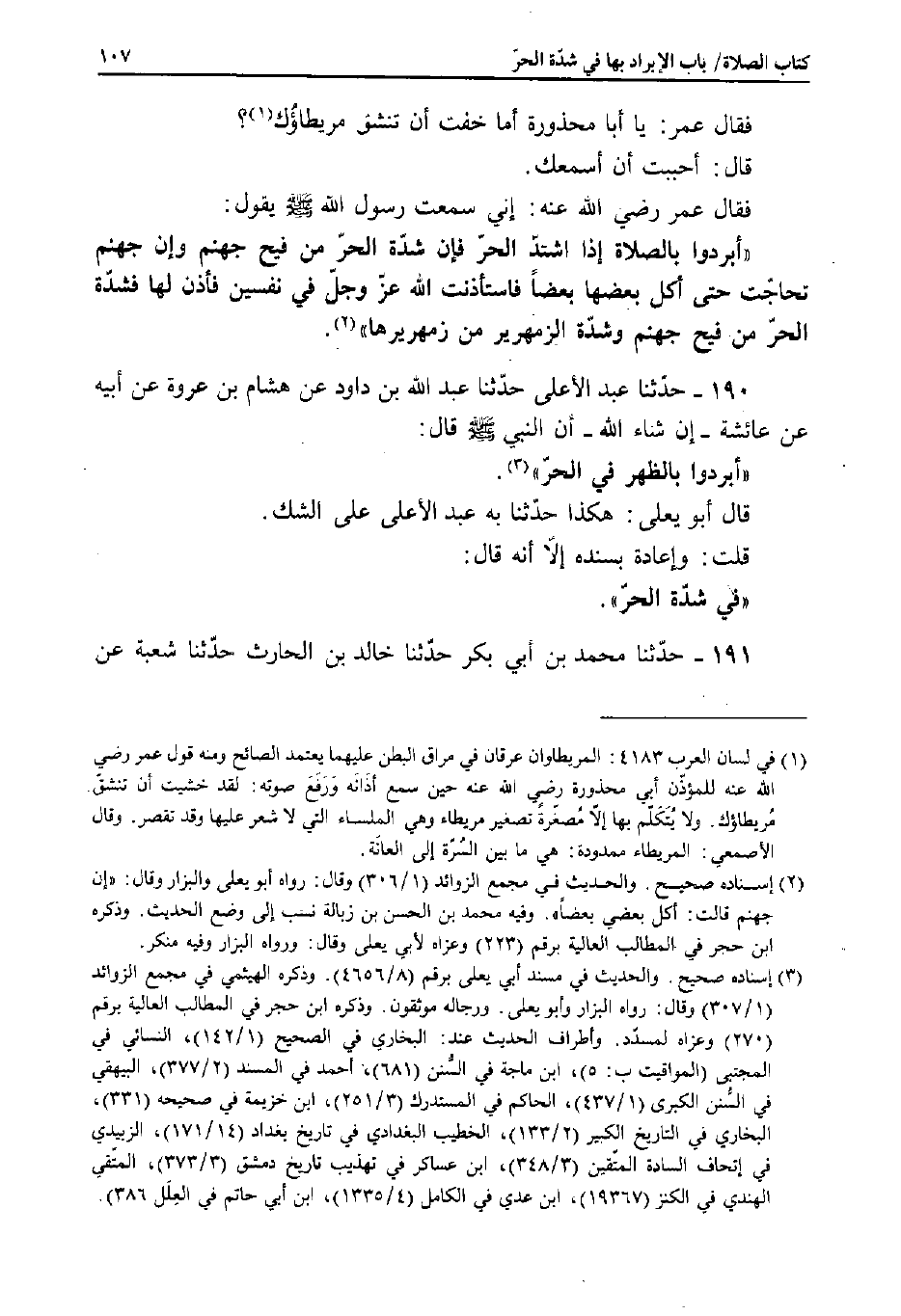 190 - حَدَّثَنَا عَبْدُ الأَعْلَى، حَدَّثَنَا عَبْدُ اللَّهِ بْنُ دَاوُدَ، عَنْ هِشَامِ بْنِ عُرْوَةَ، عَنْ أَبِيهِ، عَنْ عَائِشَةَ - إِنْ شَاءَ اللَّهُ - أَنَّ النَّبِيَّ صَلَّى اللَّهُ عَلَيْهِ وَسَلَّمَ قَالَ: «أَبْرِدُوا بِالظُّهْرِ فِي الْحَرِّ» .