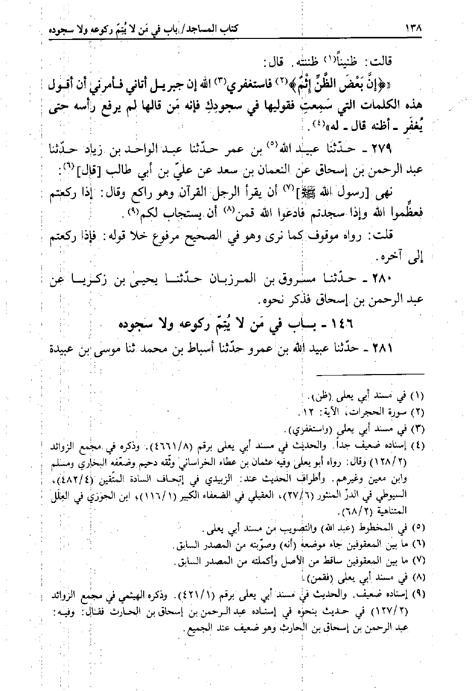 146 -بَابٌ: فِي مَنْ لا يُتِمَّ رُكُوعَهُ وَلا سُجُودَهُ