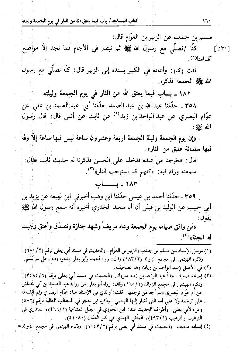 358 - حَدَّثَنَا عَبْدُ اللَّهِ بْنُ عَبْدِ الصَّمَدِ، حَدَّثَنَا أَبِي عَبْدُ الصَّمَدِ بْنُ عَلِيٍّ، عَنْ عَوَّامٍ الْبَصْرِيِّ، عَنْ عَبْدِ الْوَاحِدِ بْنِ زَيْدٍ، عَنْ ثَابِتٍ، عَنْ أَنَسٍ قَالَ: قَالَ رَسُولُ اللَّهِ صَلَّى اللَّهُ عَلَيْهِ وَسَلَّمَ: «إِنَّ يَوْمَ الْجُمُعَةِ وَلَيْلَةَ الْجُمُعَةِ أَرْبَعَةٌ وَعِشْرُونَ سَاعَةً لَيْسَ فِيهَا سَاعَةٌ إِلا وَاللَّهِ فِيهَا سِتُّمِائَةِ عَتِيقٍ مِنَ النَّارِ» .