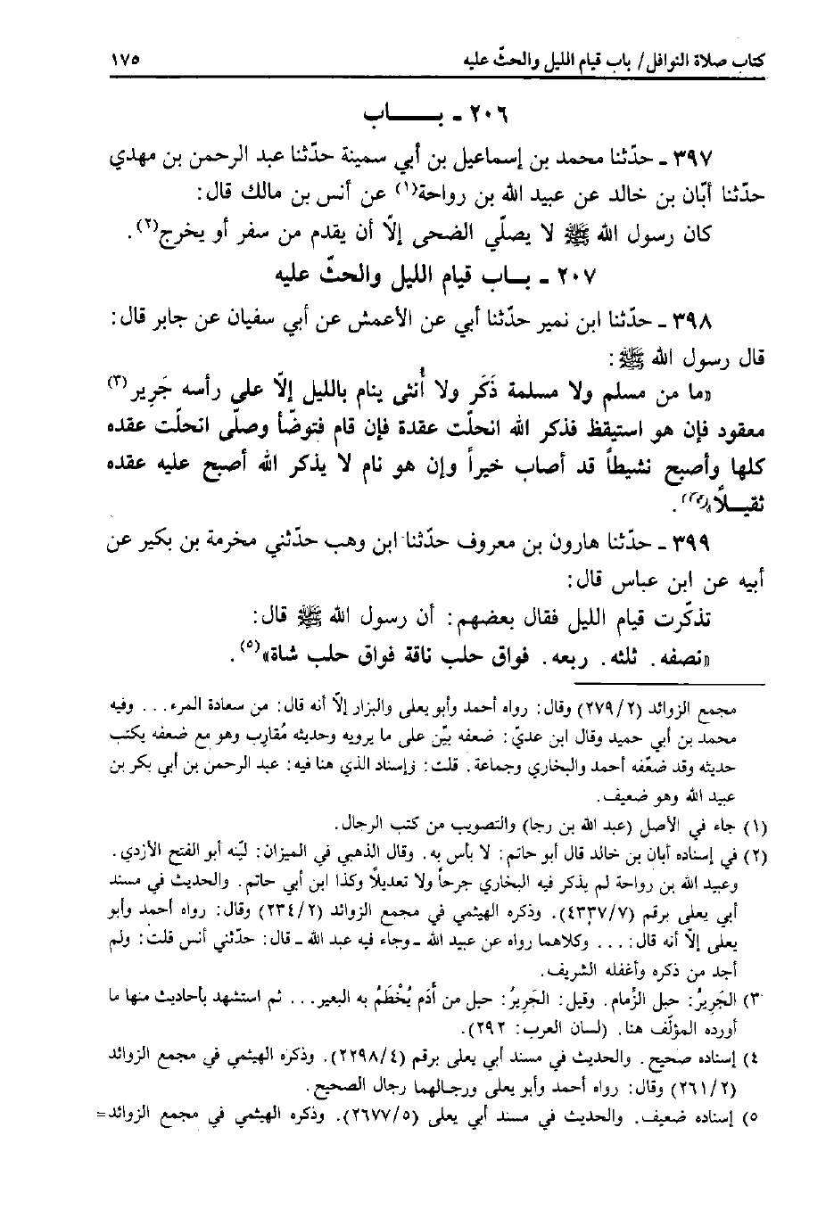 398 - حَدَّثَنَا ابْنُ نُمَيْرٍ، حَدَّثَنَا أَبِي، عَنِ الأَعْمَشِ، عَنْ أَبِي سُفْيَانَ، عَنْ جَابِرٍ قَالَ: قَالَ رَسُولُ اللَّهِ صَلَّى اللَّهُ عَلَيْهِ وَسَلَّمَ: «مَا مِنْ مُسْلِمٍ وَلا مُسْلِمَةٍ ذَكَرٍ وَلا أُنْثَى يَنَامُ بِاللَّيْلِ إِلا عَلَى رَأْسِهِ جَرِيرٌ مَعْقُودٌ، فَإِنْ هُوَ اسْتَيْقَظَ فَذَكَرَ اللَّهَ انْحَلَّتْ عُقْدَةٌ، فَإِنْ قَامَ فَتَوَضَّأَ وَصَلَّى انْحَلَّتْ عُقَدُهُ كُلُّهَا وَأَصْبَحَ نَشِيطًا قَدْ أَصَابَ خَيْرًا وَإِنْ هُوَ نَامَ لا يَذْكُرُ اللَّهَ أَصْبَحَ عَلَيْهِ عُقَدُهُ ثَقِيلا» .