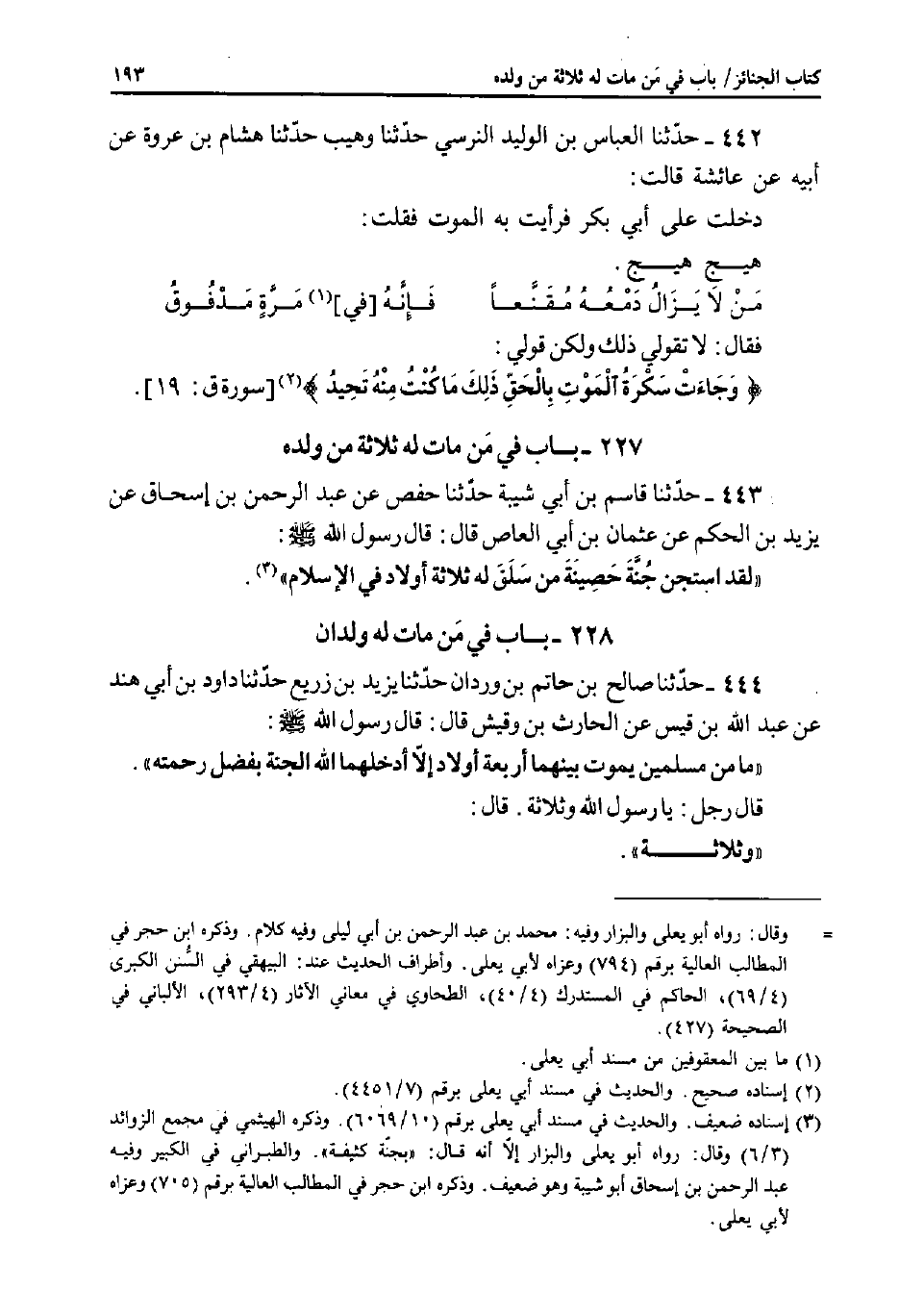 بَابٌ: فِي مَنْ مَاتَ لَهُ ثَلاثَةٌ مِنْ وَلَدِهِ
