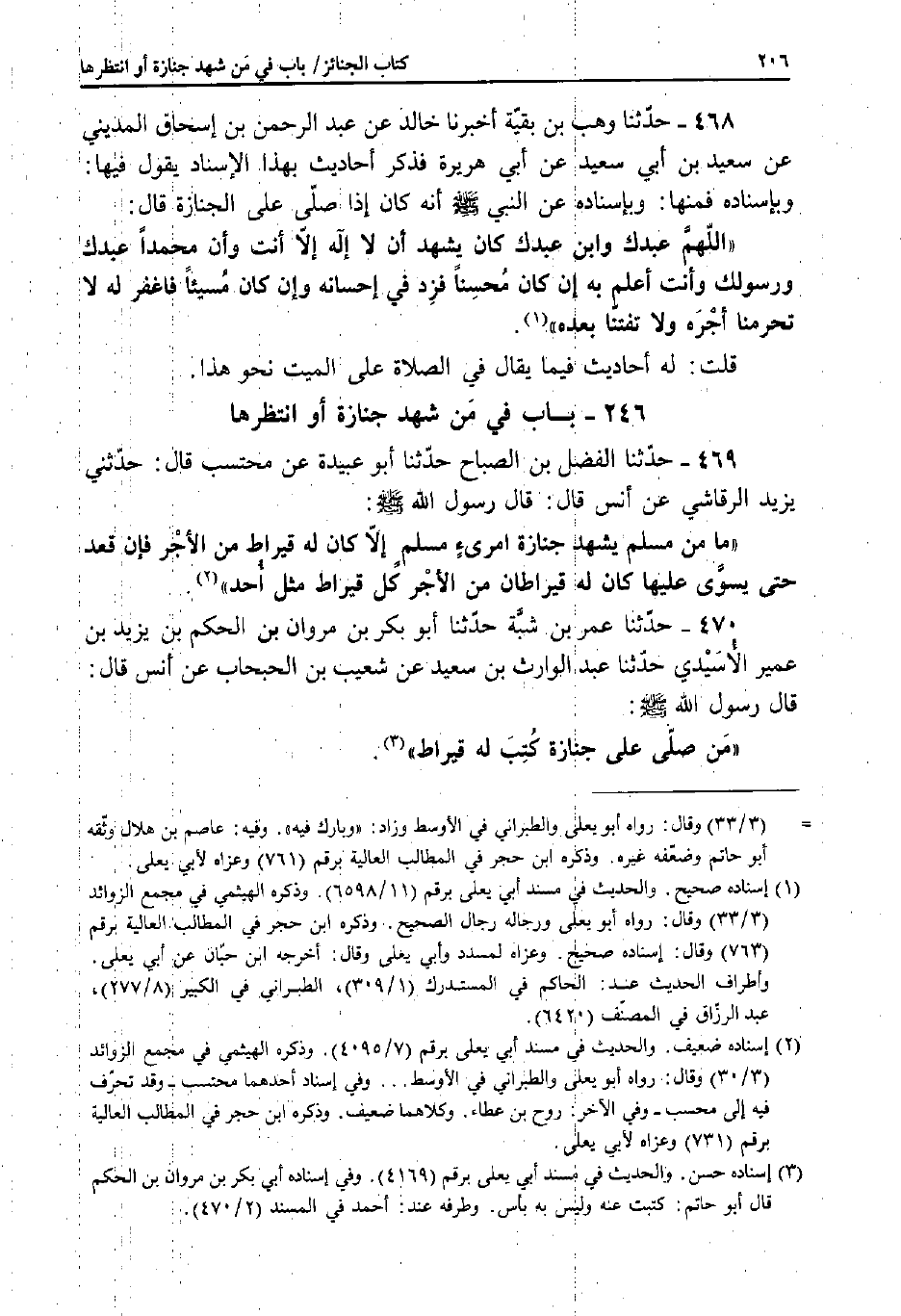 469 - حَدَّثَنَا الْفَضْلُ بْنُ الصَّبَّاحِ، حَدَّثَنَا أَبُو عُبَيْدَةَ، عَنْ مُحْتَسِبٍ قَالَ: حَدَّثَنِي يَزِيدُ الرَّقَاشِيُّ، عَنْ أَنَسٍ قَالَ: قَالَ رَسُولُ اللَّهِ صَلَّى اللَّهُ عَلَيْهِ وَسَلَّمَ: «مَا مِنْ مُسْلِمٍ يَشْهَدُ جِنَازَةَ امْرِئٍ مُسْلِمٍ، إِلا كَانَ لَهُ قِيرَاطٌ مِنَ الأَجْرِ، فَإِنْ قَعَدَ حَتَّى يُسَوَّى عَلَيْهَا؛ كَانَ لَهُ قِيرَاطَانِ مِنَ الأَجْرِ كُلُّ قِيرَاطٍ مِثْلُ أُحُدٍ» .