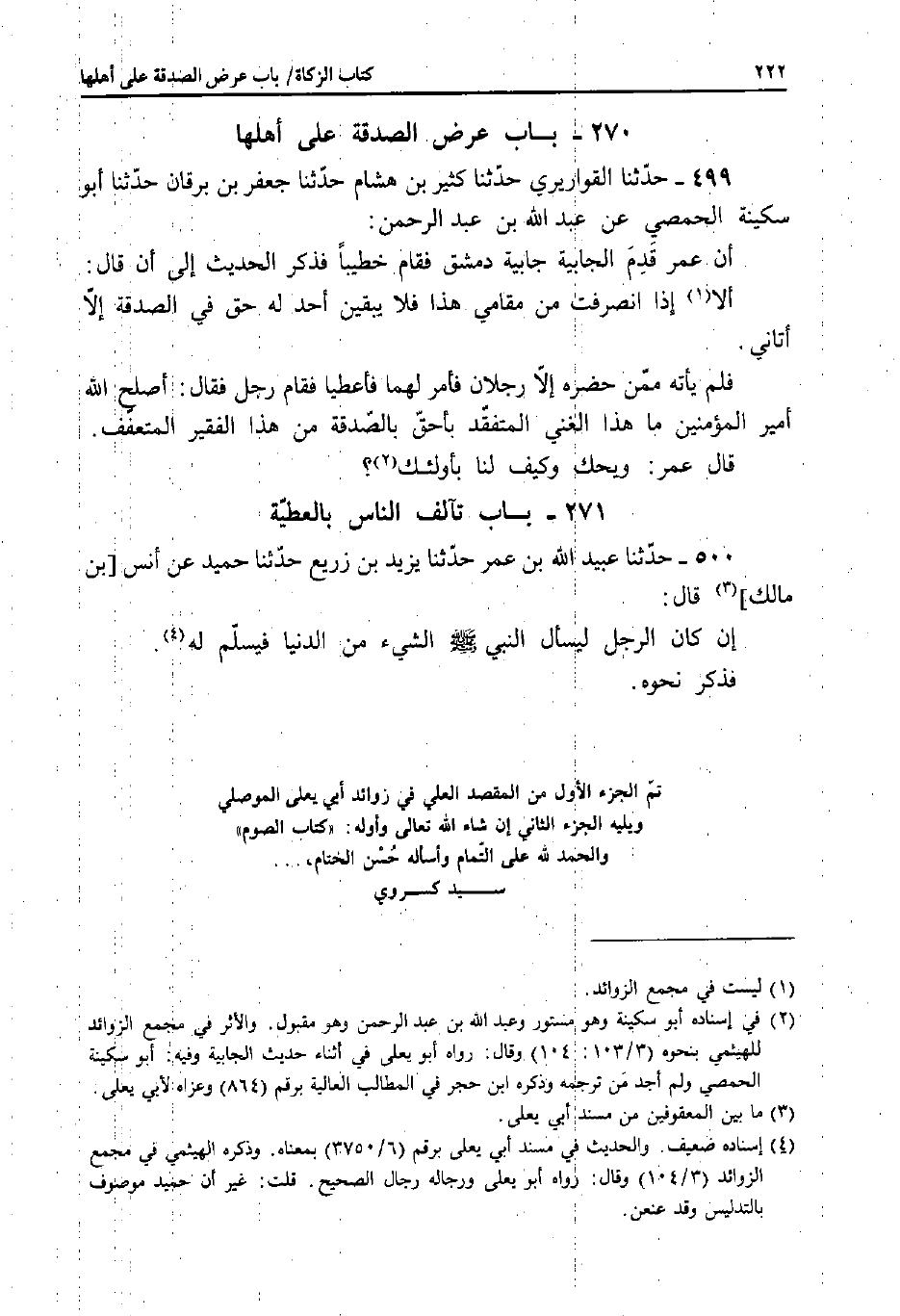 تَمَّ الْجُزْءُ الأَوَّلُ مِنَ الْمَقْصِدِ الْعَلِيِّ فِي زَوَائِدِ أَبِي يَعْلَى الْمَوْصِلِيِّ وَيَلِيهِ الْجُزْءُ الثَّانِي إِنْ شَاءَ اللَّهُ تَعَالَى وَأَوَّلُهُ: «كِتَابُ الصَّوْمِ» وَالْحَمْدُ لِلَّهِ عَلَى التَّمَامِ وَأَسْأَلُهُ حُسْنَ الْخِتَامِ ...