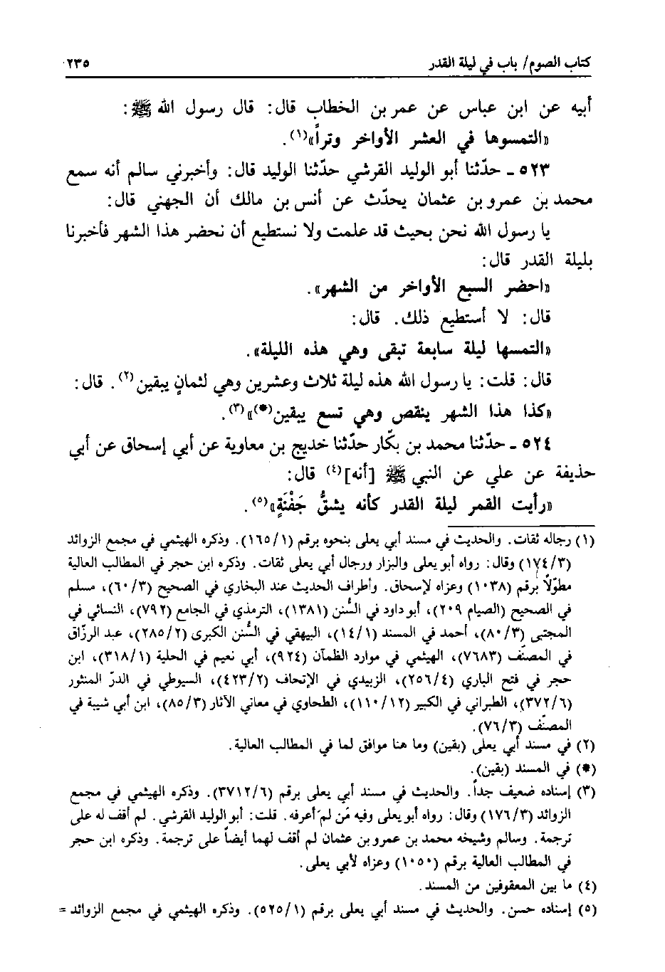 أَبِيهِ، عَنِ ابْنِ عَبَّاسٍ، عَنْ عُمَرَ بْنِ الْخَطَّابِ قَالَ: قَالَ رَسُولُ اللَّهِ صَلَّى اللَّهُ عَلَيْهِ وَسَلَّمَ: «الْتَمِسُوهَا فِي الْعَشْرِ الأَوَاخِرِ وِتْرًا» .