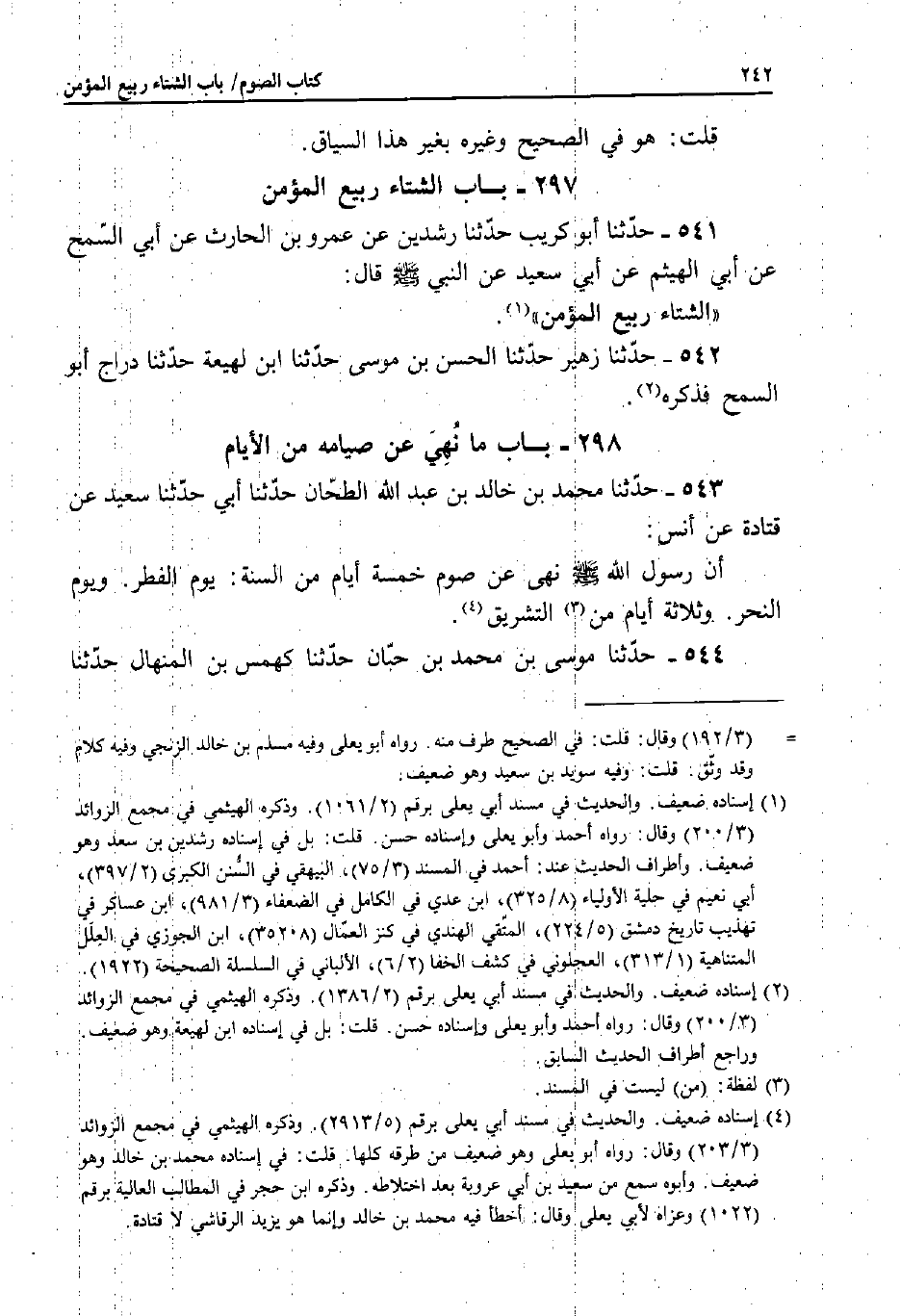 541 - حَدَّثَنَا أَبُو كُرَيْبٍ، حَدَّثَنَا رِشْدِينُ، عَنْ عَمْرِو بْنِ الْحَارِثِ، عَنْ أَبِي السَّمْحِ، عَنْ أَبِي الْهَيْثَمِ، عَنْ أَبِي سَعِيدٍ، عَنِ النَّبِيِّ صَلَّى اللَّهُ عَلَيْهِ وَسَلَّمَ قَالَ: «الشِّتَاءُ رَبِيعُ الْمُؤْمِنِ» .
