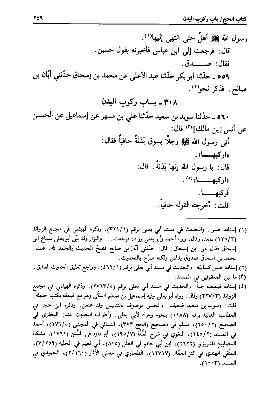 560 - حَدَّثَنَا سُوَيْدُ بْنُ سَعِيدٍ، حَدَّثَنَا عَلِيُّ بْنُ مُسْهِرٍ، عَنْ إِسْمَاعِيلَ، عَنِ الْحَسَنِ، عَنْ أَنَسِ بْنِ مَالِكٍ قَالَ: أَتَى رَسُولُ اللَّهِ صَلَّى اللَّهُ عَلَيْهِ وَسَلَّمَ رَجُلا يَسُوقُ بَدَنَةً حَافِيًا، فَقَالَ: «ارْكَبْهَا» .