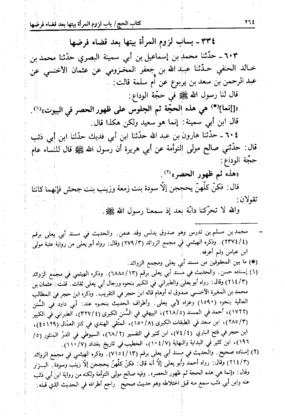604 - حَدَّثَنَا هَارُونُ بْنُ عَبْدِ اللَّهِ، حَدَّثَنَا ابْنُ أَبِي فُدَيْكٍ، حَدَّثَنَا ابْنُ أَبِي ذِئْبٍ قَالَ: حَدَّثَنِي صَالِحٌ مَوْلَى التَّوْأَمَةِ، عَنْ أَبِي هُرَيْرَةَ أَنَّ رَسُولَ اللَّهِ صَلَّى اللَّهُ عَلَيْهِ وَسَلَّمَ قَالَ لِلنِّسَاءِ عَامَ حَجَّةِ الْوَدَاعِ: «هَذِهِ ثُمَّ ظُهُورَ الْحُصُرِ» .