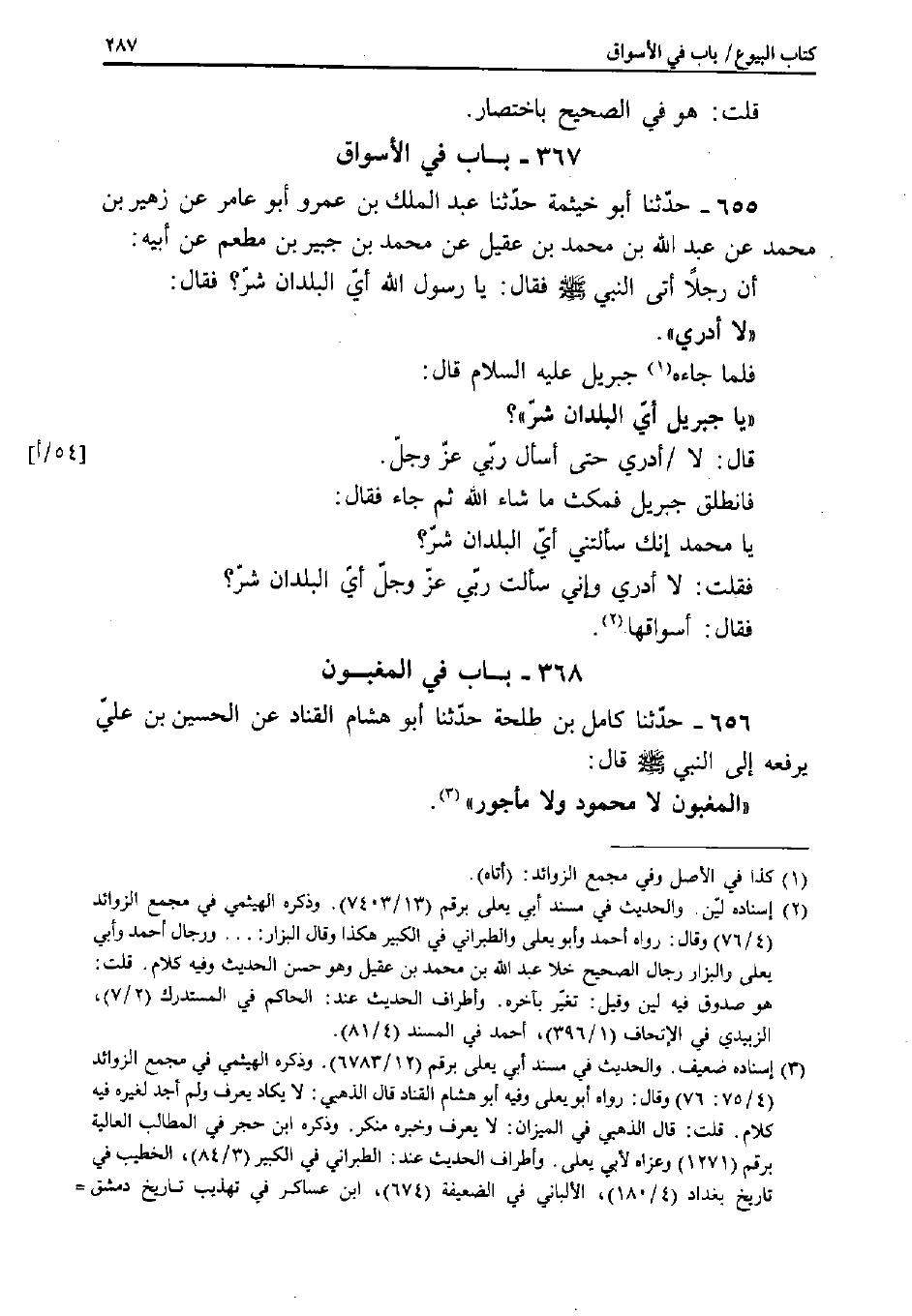 فَانْطَلَقَ جِبْرِيلُ فَمَكَثَ مَا شَاءَ اللَّهُ ثُمَّ جَاءَ فَقَالَ: يَا مُحَمَّدُ، إِنَّكَ سَأَلْتَنِي أَيُّ الْبُلْدَانِ شَرٌّ؟ فَقُلْتُ: لا أَدْرِي وَإِنِّي سَأَلْتُ رَبِّي عَزَّ وَجَلَّ أَيُّ الْبُلْدَانِ شَرٌّ؟ فَقَالَ: أَسْوَاقُهَا.