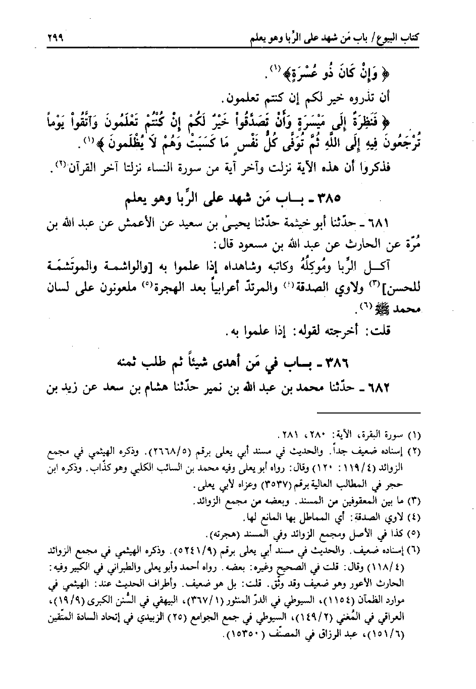 681 - حَدَّثَنَا أَبُو خَيْثَمَةَ، حَدَّثَنَا يَحْيَى بْنُ سَعِيدٍ، عَنِ الأَعْمَشِ، عَنْ عَبْدِ اللَّهِ بْنِ مُرَّةَ، عَنِ الْحَارِثِ، عَنْ عَبْدِ اللَّهِ بْنِ مَسْعُودٍ قَالَ: آكِلُ الرِّبَا، وَمُوكِلُهُ، وَكَاتِبُهُ، وَشَاهِدَاهُ إِذَا عَلِمُوا بِهِ وَالْوَاشِمَةُ وَالْمُوتَشِمَةُ لِلْحُسْنِ، وَلاوِي الصَّدَقَةِ، وَالْمُرْتَدُّ أَعْرَابِيًّا بَعْدَ الْهِجْرَةِ مَلْعُونُونَ عَلَى لِسَانِ مُحَمَّدٍ صَلَّى اللَّهُ عَلَيْهِ وَسَلَّمَ.
