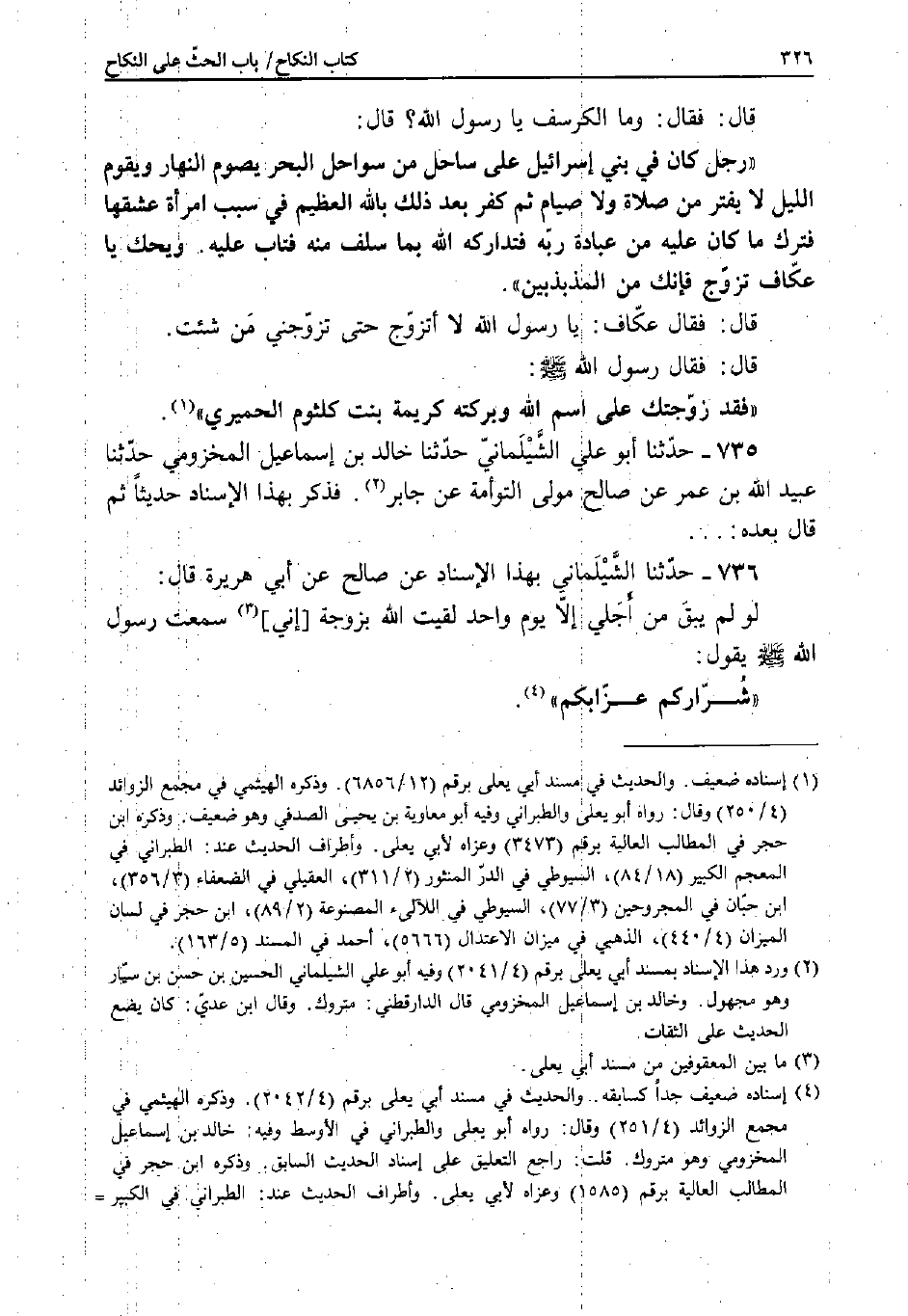 736 - حَدَّثَنَا الشَّيْلَمَانِيُّ بِهَذَا الإِسْنَادِ، عَنْ صَالِحٍ، عَنْ أَبِي هُرَيْرَةَ قَالَ: لَوْ لَمْ يَبْقَ مِنْ أَجَلِي إِلا يَوْمٌ وَاحِدٌ لَقِيتُ اللَّهَ بِزَوْجَةٍ؛ إِنِّي سَمِعْتُ رَسُولَ اللَّهِ صَلَّى اللَّهُ عَلَيْهِ وَسَلَّمَ يَقُولُ: «شِرَارُكُمْ عُزَّابُكُمْ» .