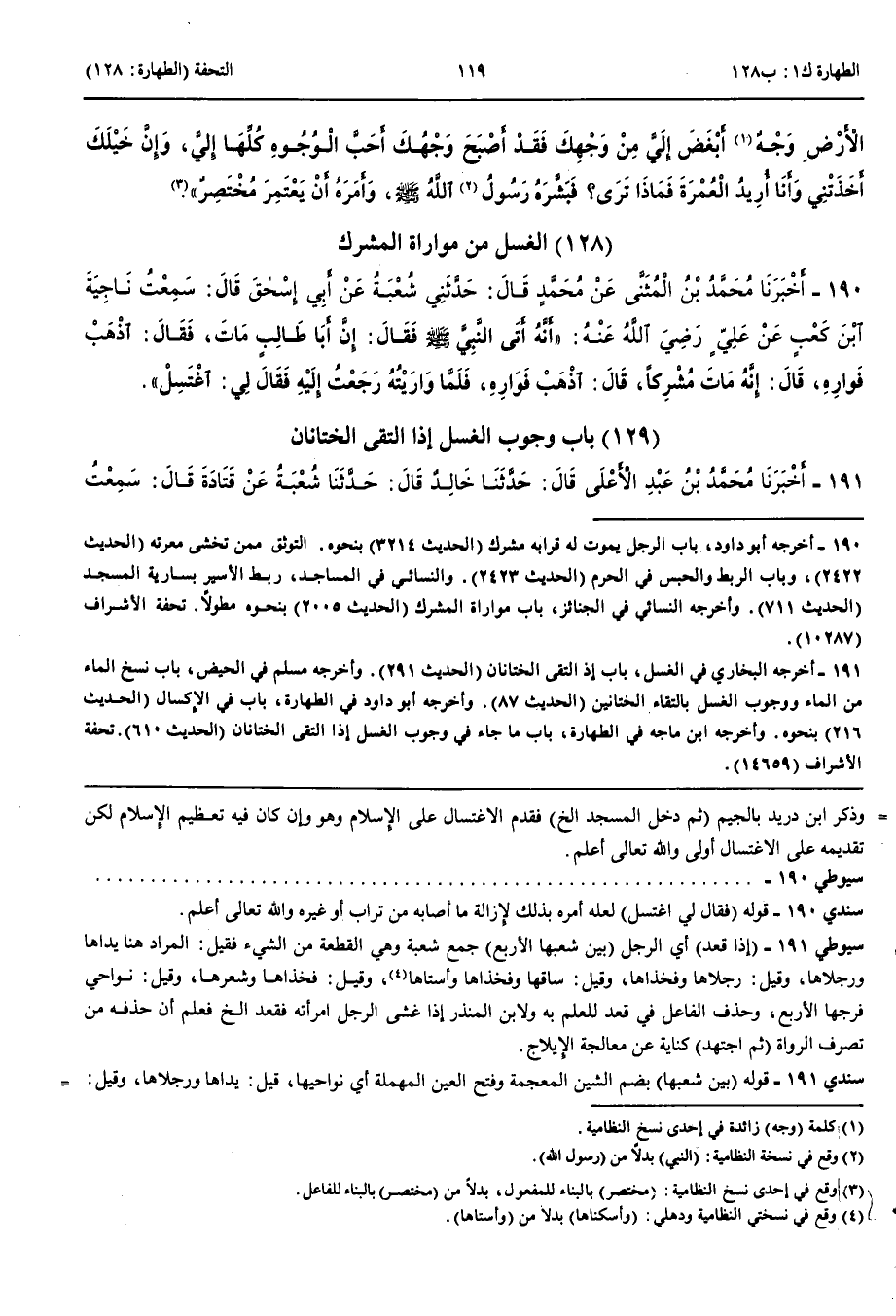 الْغُسْلُ مِنْ مُوَارَاةِ الْمُشْرِكِ 190 - أَخْبَرَنَا مُحَمَّدُ بْنُ الْمُثَنَّى عَنْ مُحَمَّدٍ قَالَ حَدَّثَنِي شُعْبَةُ عَنْ أَبِي إِسْحَقَ قَالَ سَمِعْتُ نَاجِيَةَ بْنَ كَعْبٍ عَنْ عَلِيٍّ رَضِيَ اللَّهُ عَنْهُ أَنَّهُ أَتَى النَّبِيَّ صَلَّى اللَّهُ عَلَيْهِ وَسَلَّمَ فَقَالَ إِنَّ أَبَا طَالِبٍ مَاتَ فَقَالَ اذْهَبْ فَوَارِهِ قَالَ إِنَّهُ مَاتَ مُشْرِكًا قَالَ اذْهَبْ فَوَارِهِ فَلَمَّا وَارَيْتُهُ رَجَعْتُ إِلَيْهِ فَقَالَ لِي اغْتَسِلْ