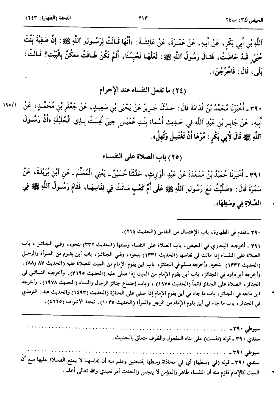 مَا تَفْعَلُ النُّفَسَاءُ عِنْدَ الْإِحْرَامِ 390 - أَخْبَرَنَا مُحَمَّدُ بْنُ قُدَامَةَ قَالَ حَدَّثَنَا جَرِيرٌ عَنْ يَحْيَى بْنِ سَعِيدٍ عَنْ جَعْفَرِ بْنِ مُحَمَّدٍ عَنْ أَبِيهِ عَنْ جَابِرِ بْنِ عَبْدِ اللَّهِ فِي حَدِيثِ أَسْمَاءَ بِنْتِ عُمَيْسٍ حِينَ نُفِسَتْ بِذِي الْحُلَيْفَةِ أَنَّ رَسُولَ اللَّهِ صَلَّى اللَّهُ عَلَيْهِ وَسَلَّمَ قَالَ لِأَبِي بَكْرٍ مُرْهَا أَنْ تَغْتَسِلَ وَتُهِلَّ