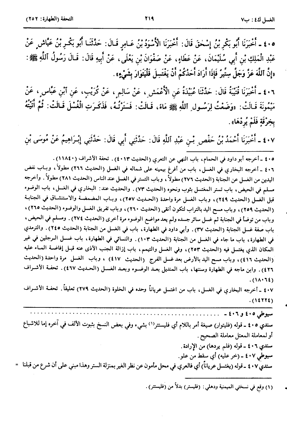 405 - أَخْبَرَنَا أَبُو بَكْرِ بْنُ إِسْحَقَ قَالَ حَدَّثَنَا الْأَسْوَدُ بْنُ عَامِرٍ قَالَ حَدَّثَنَا أَبُو بَكْرِ بْنُ عَيَّاشٍ عَنْ عَبْدِ الْمَلِكِ بْنِ أَبِي سُلَيْمَانَ عَنْ عَطَاءٍ عَنْ صَفْوَانَ بْنِ يَعْلَى عَنْ أَبِيهِ قَالَ قَالَ رَسُولُ اللَّهِ صَلَّى اللَّهُ عَلَيْهِ وَسَلَّمَ إِنَّ اللَّهَ عَزَّ وَجَلَّ سِتِّيرٌ فَإِذَا أَرَادَ أَحَدُكُمْ أَنْ يَغْتَسِلَ فَلْيَتَوَارَ بِشَيْءٍ