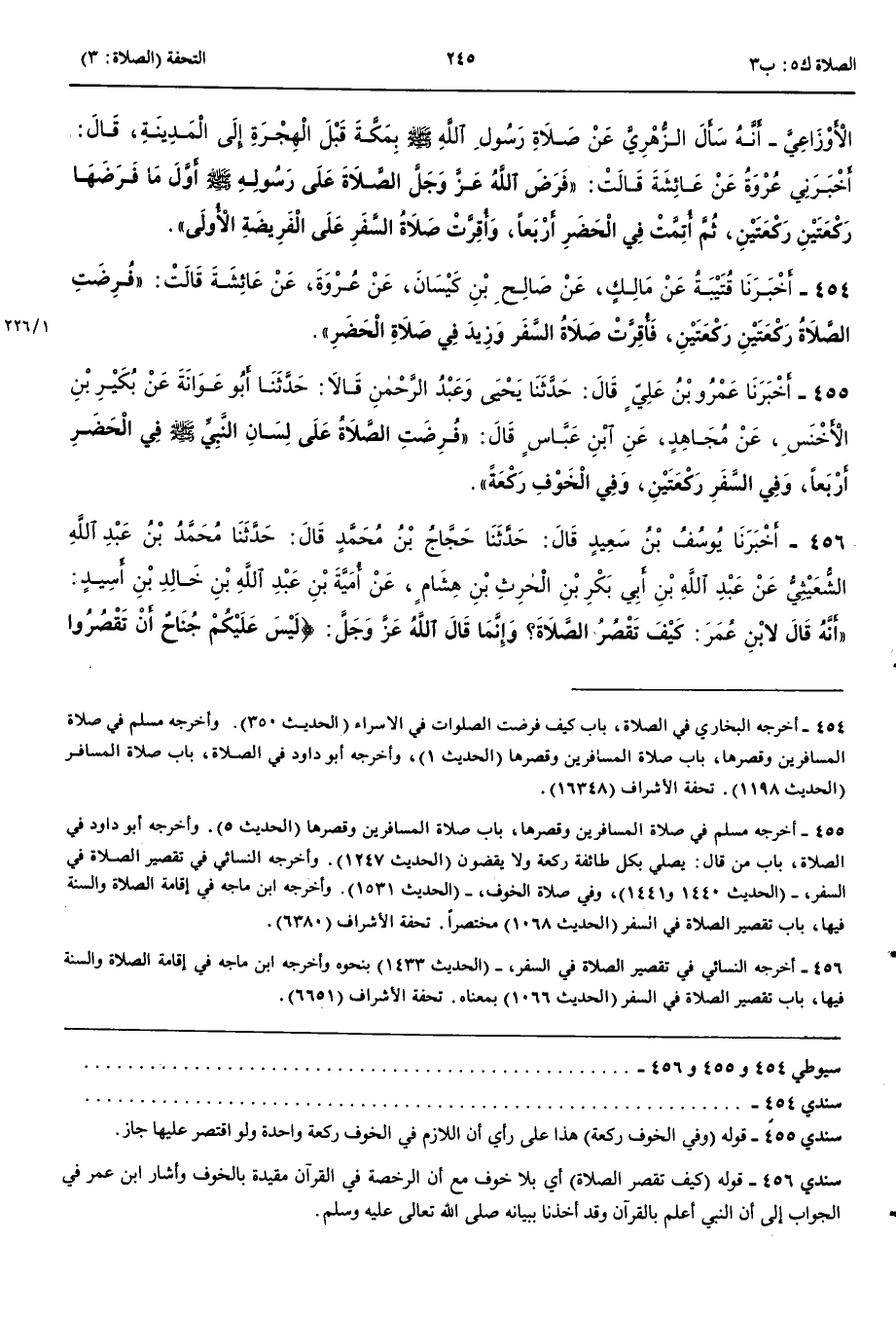 456 - أَخْبَرَنَا يُوسُفُ بْنُ سَعِيدٍ قَالَ حَدَّثَنَا حَجَّاجُ بْنُ مُحَمَّدٍ قَالَ حَدَّثَنَا مُحَمَّدُ بْنُ عَبْدِ اللَّهِ الشُّعَيْثِيُّ عَنْ عَبْدِ اللَّهِ بْنِ أَبِي بَكْرِ بْنِ الْحَارِثِ بْنِ هِشَامٍ عَنْ أُمَيَّةَ بْنِ عَبْدِ اللَّهِ بْنِ خَالِدِ بْنِ أَسِيدٍ أَنَّهُ قَالَ لِابْنِ عُمَرَ كَيْفَ تَقْصُرُ الصَّلَاةَ وَإِنَّمَا قَالَ اللَّهُ عَزَّ وَجَلَّ { لَيْسَ عَلَيْكُمْ جُنَاحٌ أَنْ تَقْصُرُوا مِنْ الصَّلَاةِ إِنْ خِفْتُمْ } فَقَالَ ابْنُ عُمَرَ يَا ابْنَ أَخِي إِنَّ رَسُولَ اللَّهِ صَلَّى اللَّهُ عَلَيْهِ وَسَلَّمَ أَتَانَا وَنَحْنُ ضُلَّالٌ فَعَلَّمَنَا فَكَانَ فِيمَا عَلَّمَنَا أَنَّ اللَّهَ عَزَّ وَجَلَّ أَمَرَنَا أَنْ نُصَلِّيَ رَكْعَتَيْنِ فِي السَّفَرِ قَالَ الشُّعَيْثِيُّ وَكَانَ الزُّهْرِيُّ يُحَدِّثُ بِهَذَا الْحَدِيثِ عَنْ عَبْدِ اللَّهِ بْنِ أَبِي بَكْرٍ